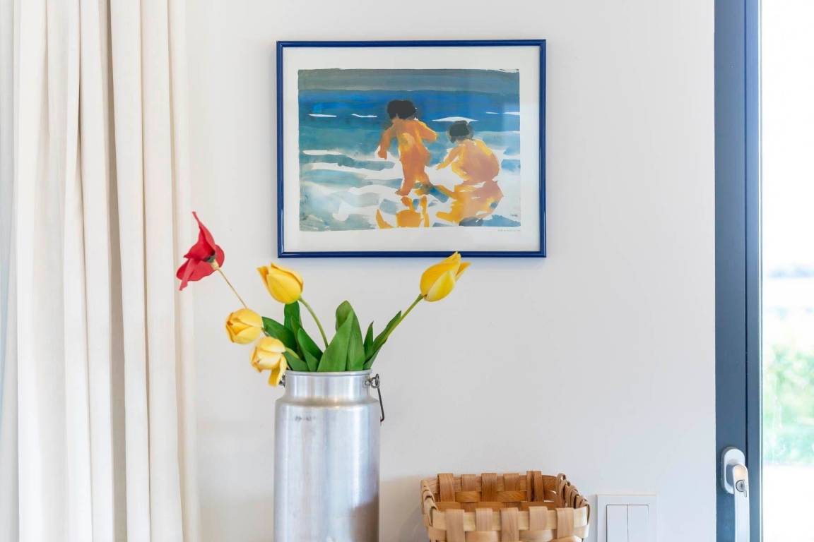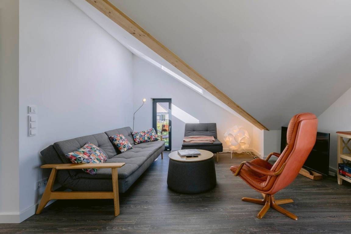 Die helle und einladende Gestaltung der Räume sorgt für ein gemütliches Wohngefühl. Eine sehr gut ausgestattete Küche mit modernen Geräten, darunter Sandwichmaker und Pürierstab, ergänzt das Angebot. Der Hauswirtschaftsraum bietet praktische Annehmlichkeiten wie eine Waschmaschine und Reinigungsutensilien. Das Ferienhaus ist 2023 neu gebaut und ist zudem barrierefrei im Erdgeschoss gestaltet.