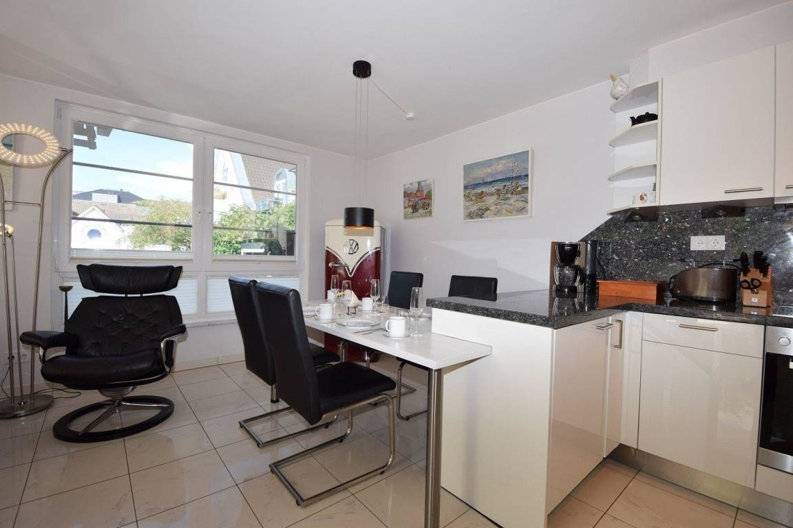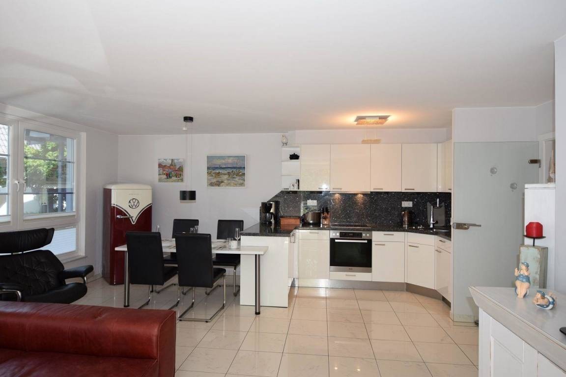 Die moderne und helle Ferienwohnung "Skandinavienblick Sandbank" besticht durch ihre Nähe zum Hohwachter Sandstrand, der nur 10 Meter entfernt liegt. Der großzügige Wohnraum ist lichtdurchflutet und umfasst eine gemütliche Essecke sowie eine offene Küchenzeile, ausgestattet mit Geschirrspüler, Herd, Backofen, Kühlschrank mit Gefriermöglichkeit und weiteren Küchenutensilien. Das komfortable Ledersofa und der große TV im Wohnbereich laden zum Entspannen ein. Das Schlafzimmer bietet ein großes Doppelbett, einen Kleiderschrank, Kommoden und einen weiteren Fernseher. Das moderne, geflieste Badezimmer verfügt über eine bodentiefe Dusche sowie einen Handtuchwärmer und Föhn. Waschmaschine und Trockner sind im Keller des Hauses zur gemeinschaftlichen Nutzung verfügbar. Ein eigener PKW-Stellplatz rundet das Angebot ab. Haustiere sind willkommen (maximal 2).