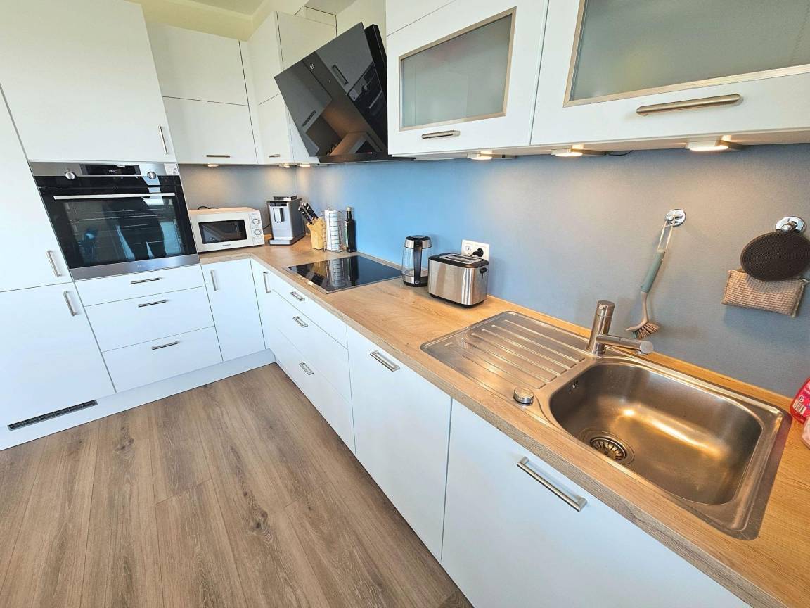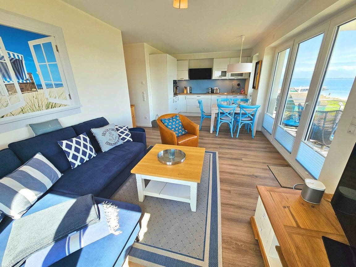 Die Ferienwohnung "Oase Pelikan" in Hohwacht bietet auf 65 m² Platz für bis zu vier Personen. Sie verfügt über zwei komfortable Schlafzimmer, ein modernes Badezimmer und ein einladendes, helles Wohnzimmer. Die offene Küche ist komplett ausgestattet mit einem Induktionsherd, Kühlschrank, Backofen, Mikrowelle und Spülmaschine. Zur Unterhaltung stehen eine HiFi-Anlage sowie ein 55 Zoll großer Fernseher zur Verfügung. Ein überdachter Balkon lädt dazu ein, den Meerblick zu genießen. Die Wohnung ist ein Nichtraucherbereich und bietet Fußbodenheizung für zusätzlichen Komfort. Ein Aufzug und ein Privatparkplatz stehen ebenfalls zur Verfügung. Die Nähe zum Sandstrand von nur 10 Metern sowie zu Restaurants und Einkaufsmöglichkeiten (1000 Meter entfernt) runden das Angebot ab und machen die "Oase Pelikan" zur idealen Wahl für Familien oder Paare.
