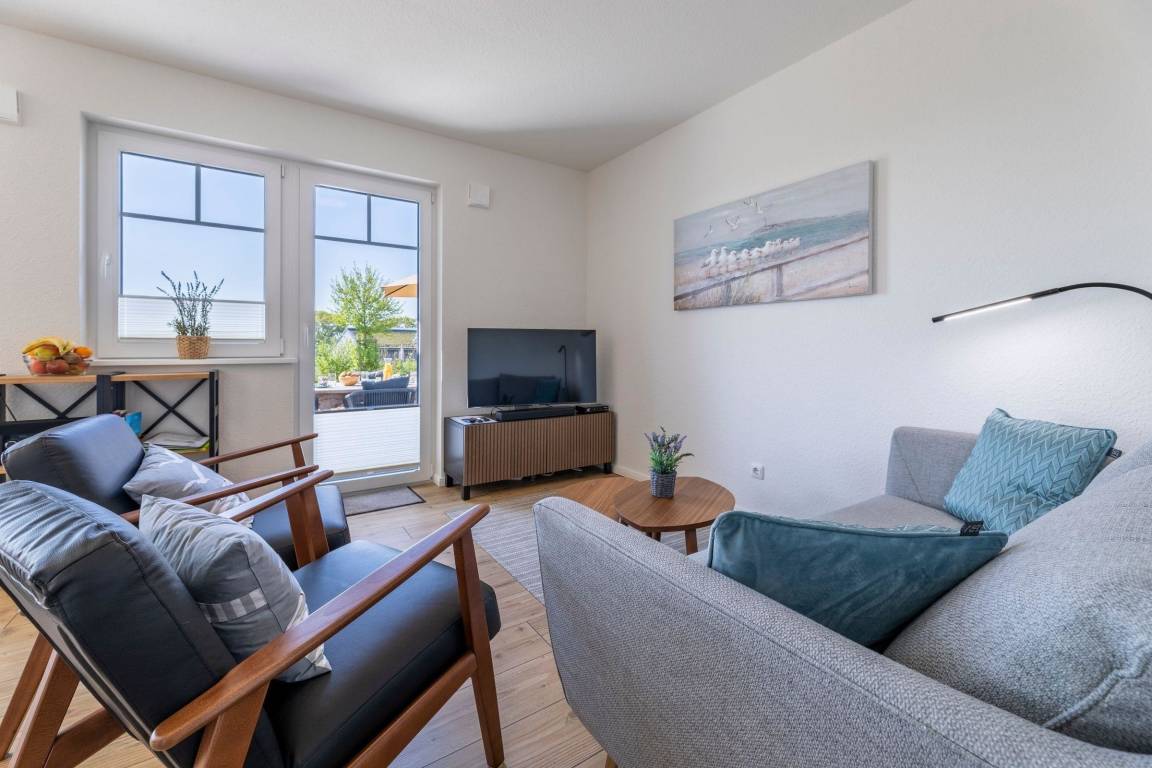 Die Ferienwohnung bietet zahlreiche Highlights für erholsame Tage. Ein freistehender Außenbereich lädt mit einem Strandkorb und einem Holzkohlegrill zum Entspannen ein. Eine private Sauna sorgt für wohlige Wärme nach einem Tag am Strand. Zudem stehen ein eigener Parkplatz und eine E-Ladestation für Autos zur Verfügung, um den Aufenthalt so komfortabel wie möglich zu gestalten.