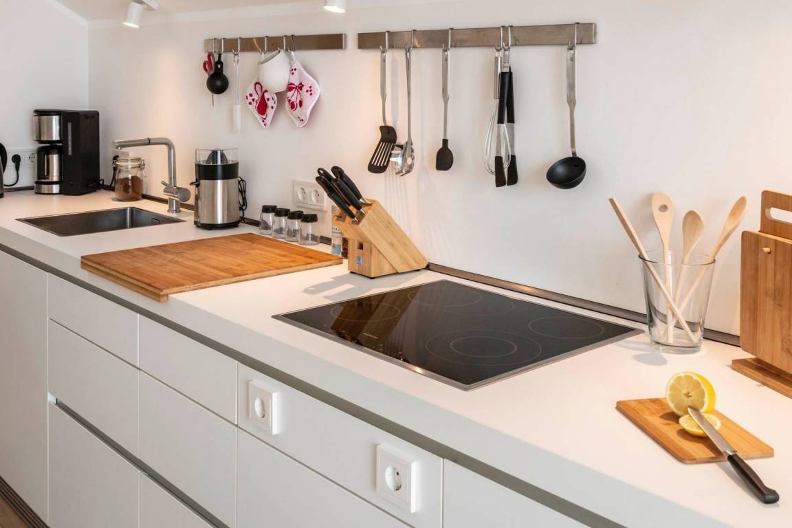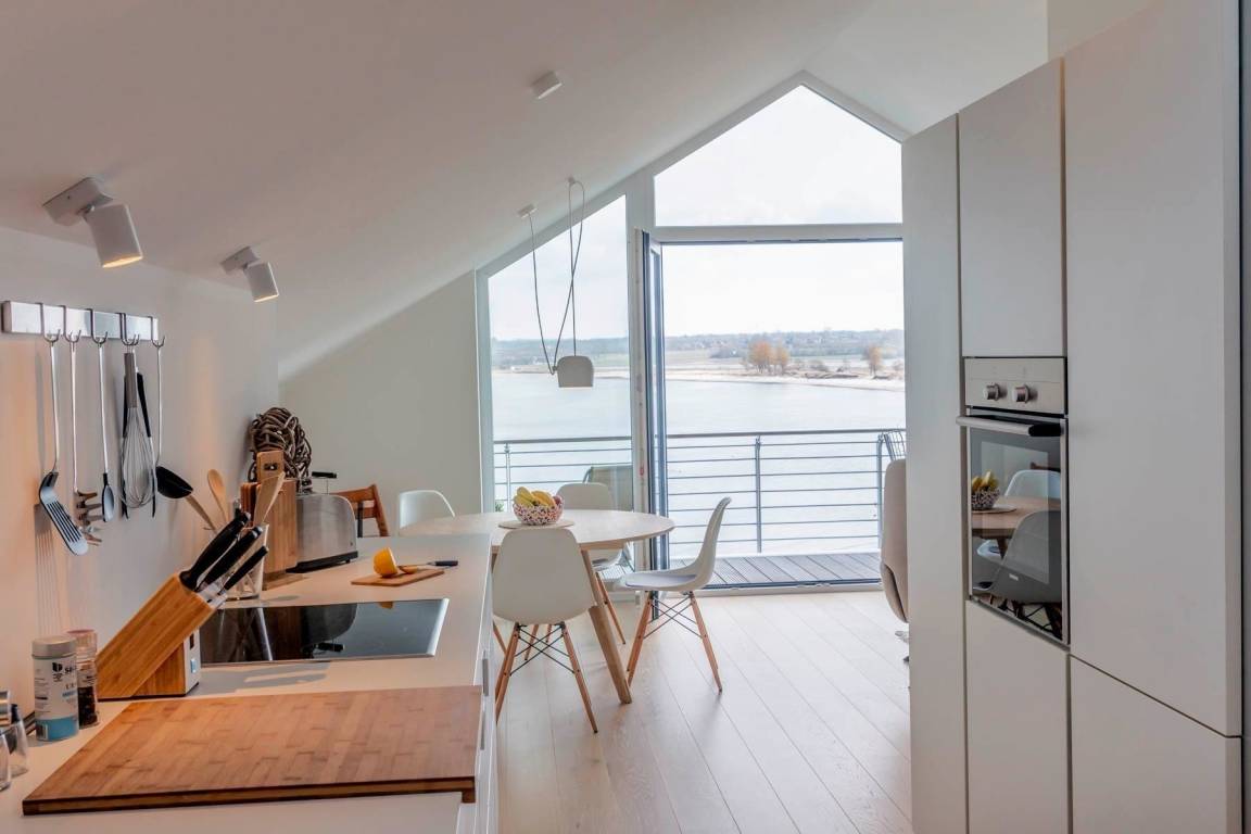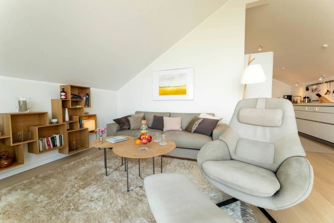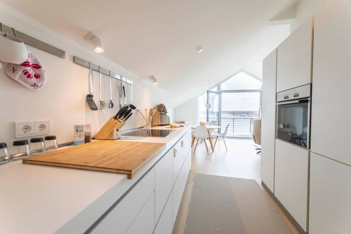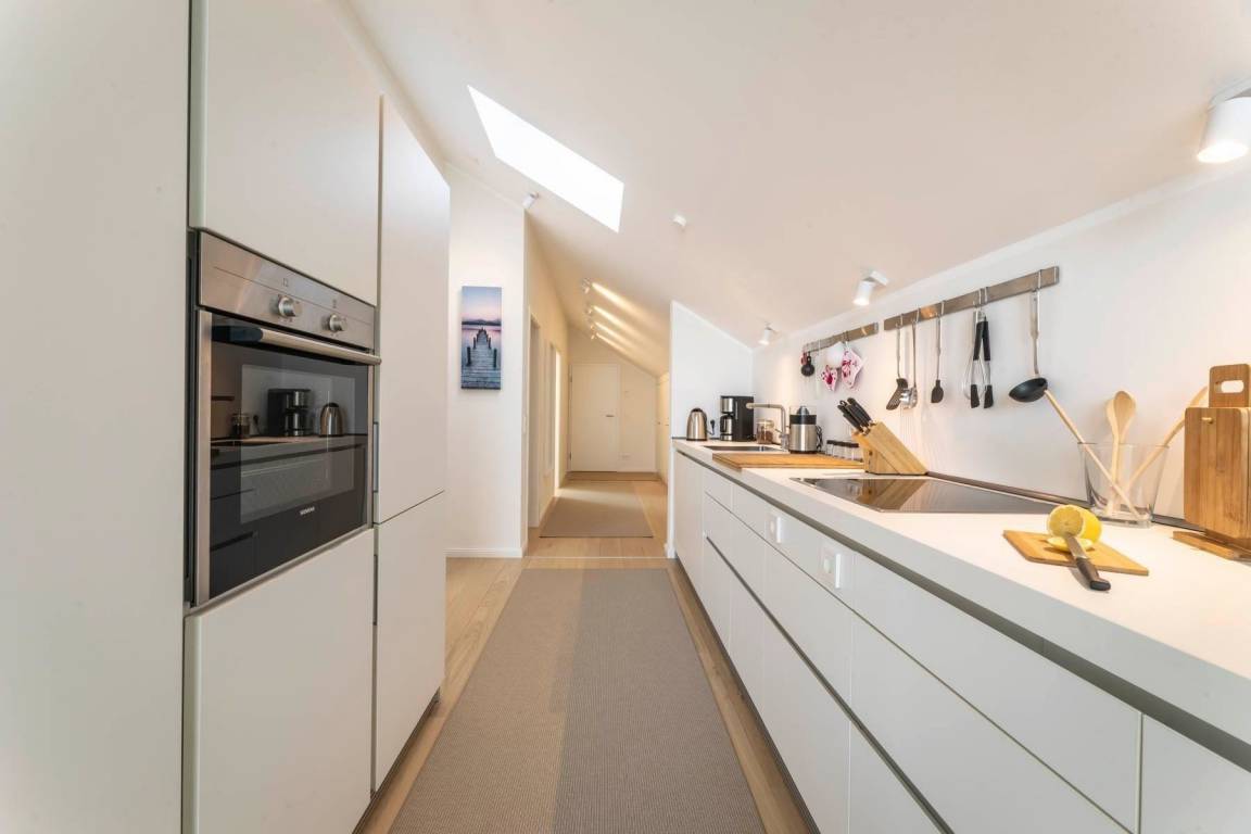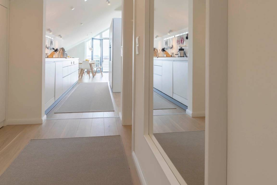 Die Ferienwohnung „Strand" bietet Platz für bis zu 4 Personen und beeindruckt mit einem der schönsten Ausblicke auf die Ostsee. Der helle Wohnraum mit großer Fensterfront ist mit einem gemütlichen Sofa, Esstisch und moderner Bulthaup-Küche ausgestattet, die mit einer Kaffeemaschine, Espressomaschine, Wasserkocher, Toaster und Spülmaschine ergänzt wird. Zwei Schlafzimmer, eines mit Doppelbett und Fernseher, das andere mit zwei Einzelbetten und Schreibtisch, gewährleisten erholsamen Schlaf. Das Badezimmer verfügt über eine bodentiefe Dusche und moderne Ausstattung, einschließlich Handtuchwärmer und Fön. Schnelles WLAN (5G) ist ebenfalls vorhanden. Zur Verfügung stehen zudem ein Wasch-/Trockenautomat sowie ein Fahrstuhl für den bequemen Zugang. Ein eigener Stellplatz für ein PKW und zwei Fahrradstellplätze runden das Angebot ab.