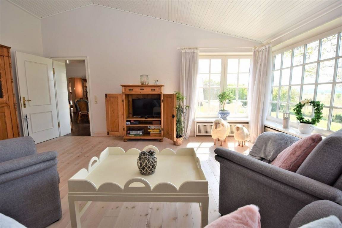 Das charmante Ferienhaus Lerchensang ist der ideale Rückzugsort für bis zu 6 Personen und bietet eine traumhafte Lage mit einzigartigem Ausblick in das Naturschutzgebiet. Drei gemütliche Schlafzimmer verfügen jeweils über ein eigenes Badezimmer, was für Privatsphäre sorgt. Eines der Schlafzimmer hat einen separaten Zugang von außen, besonders geeignet für zwei Mitreisende. Der helle Wohnbereich mit Sprossenfenstern ist der perfekte Ort für entspannte Abende. Ein zusätzliches Gäste-WC erhöht den Komfort. Die gesamte Ausstattung ist durchdacht, um den Gästen ein heimeliges Gefühl zu vermitteln. Die Räumlichkeiten sind darauf ausgelegt, Gästen Erholung und eine harmonische Atmosphäre zu bieten.