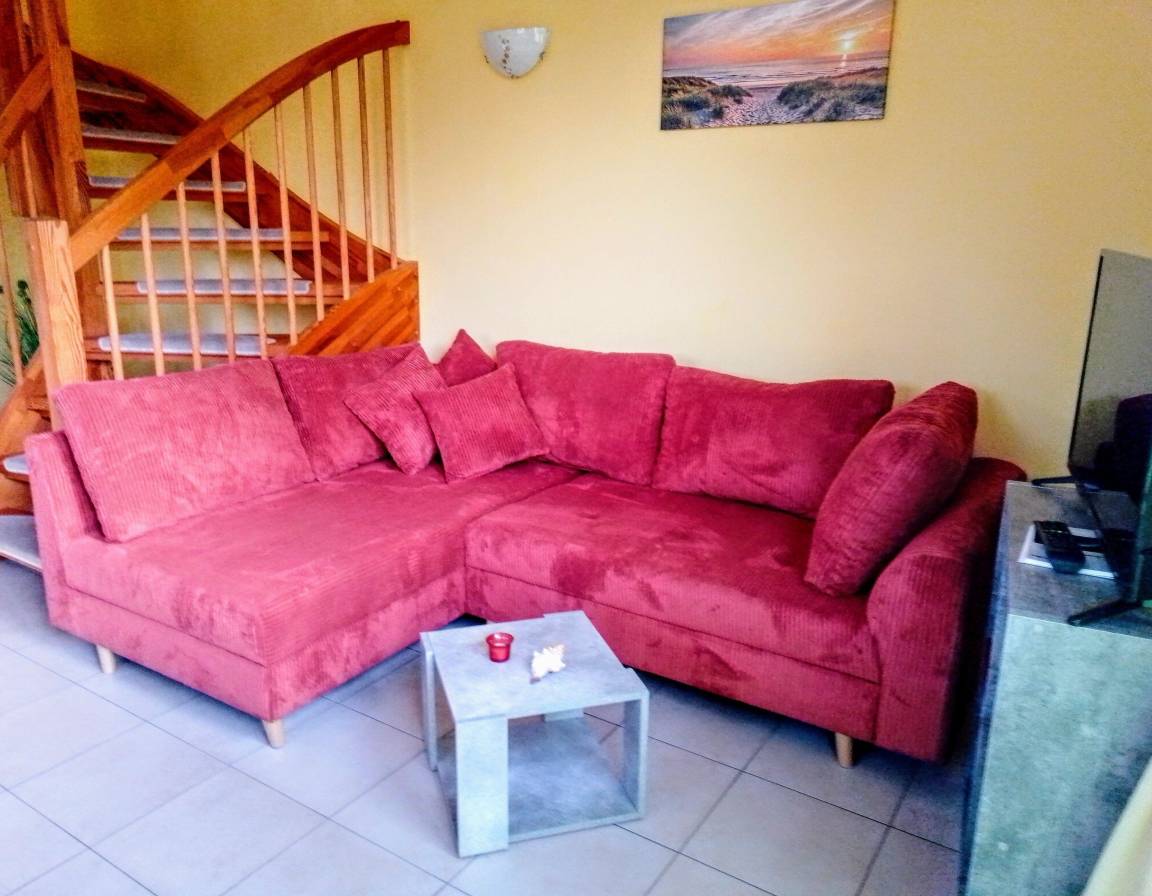 Die Ostseeperle verfügt im Parterre über einen lichtdurchfluteten offenen Wohnbereich mit großer Küchenzeile, Essbereich und gemütlicher Sofa-Ecke mit TV.