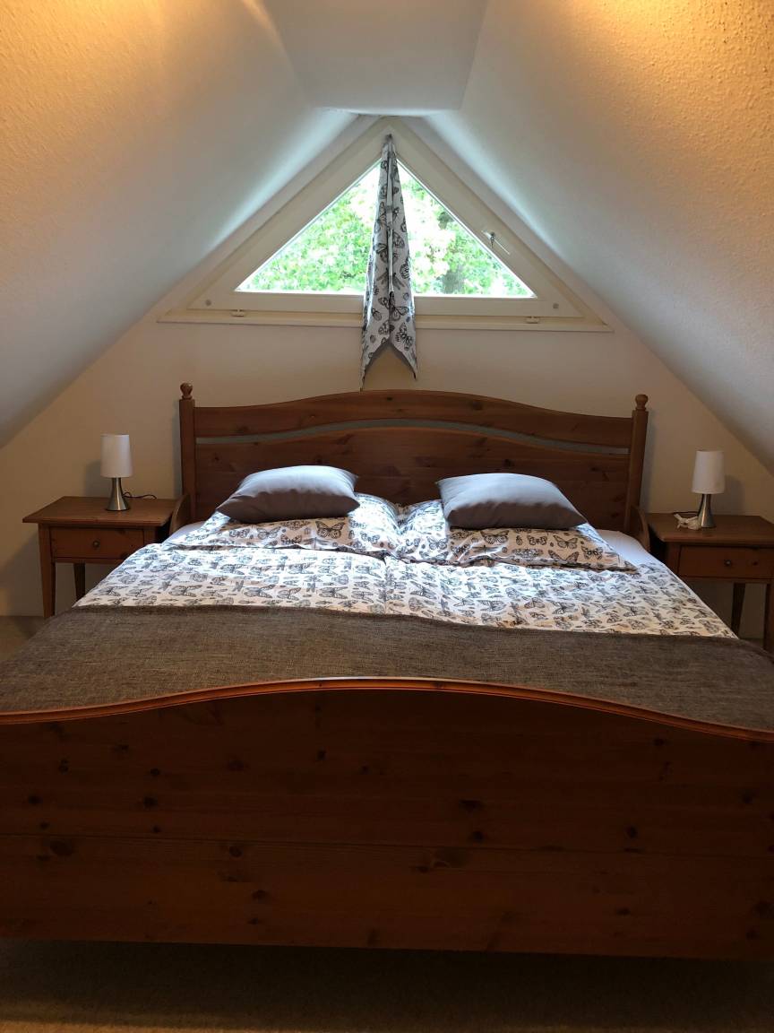 Attika Schlafzimmer mit 1.80m Doppelbett, Schreibtisch mit Bürostuhl, helles Badezimmer mit Dusche und Waschmaschine, geräumiges Wohnzimmer mit Ledercouch, LCD Fernseher mit DVD Spieler und Zattoo Box mit deutsch- und englischsprachigen Fernsehkanälen, Küche mit kleinem Esstisch, Wasserkocher, Toaster, Nespresso Kaffeemaschine, Bügeleisen und Bügelbrett, Wäscheständer, WLAN im gesamten Wohnungsbereich, Parkmöglichkeiten auf dem Grundstück oder an der Strasse, Grundstück ist durch elektrisches Tor gesichert, ruhige Lage am Ende einer Sackgasse, Hinweis für Allergiker: Es befinden sich Hunde und Katzen im Haus, gesprochene Sprachen: Deutsch/Englisch