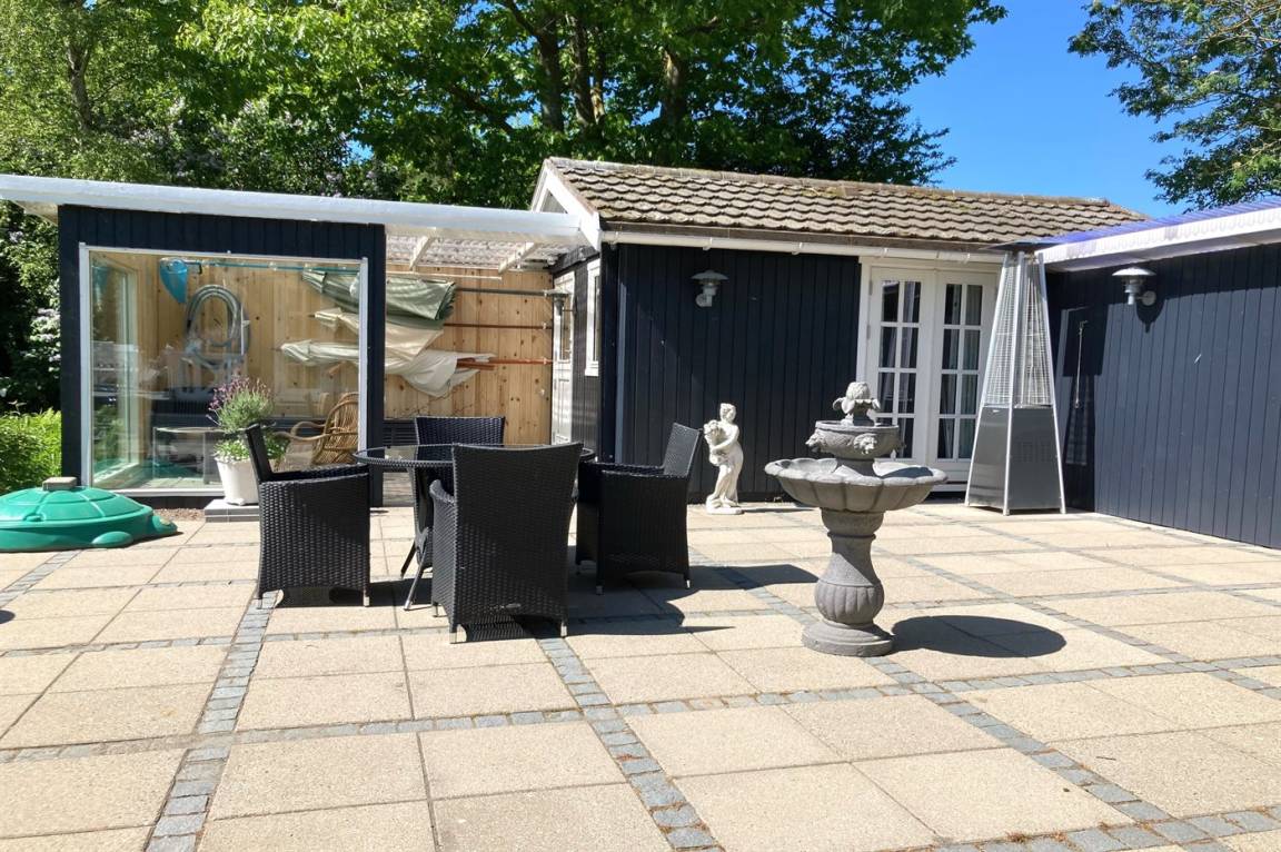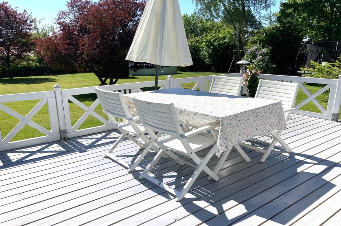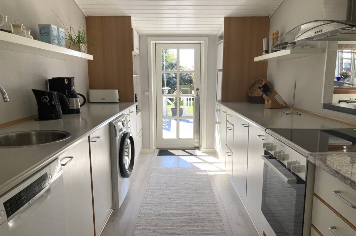 DraußenDie Ferienunterkunft liegt auf einem 1975 m² großen Gartengrundstück. Die Entfernung zum Fjord beträgt 400 m. Die nächste Einkaufsmöglichkeit liegt 2500 m entfernt. In einem Abstand von 16000 m gibt es einen Golfplatz. Es steht ein 74 m² Terrassenareal zur Verfügung. Außerdem gibt es 10 m² überdachte Terrasse. Schaukel. Sandkasten. Kinderspielhaus. Rutsche.Lagerfeuerstelle. Es steht ein Grill zur Verfügung. Parkplatz auf dem Grundstück.