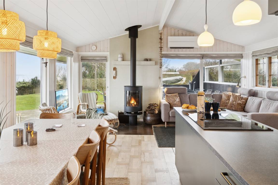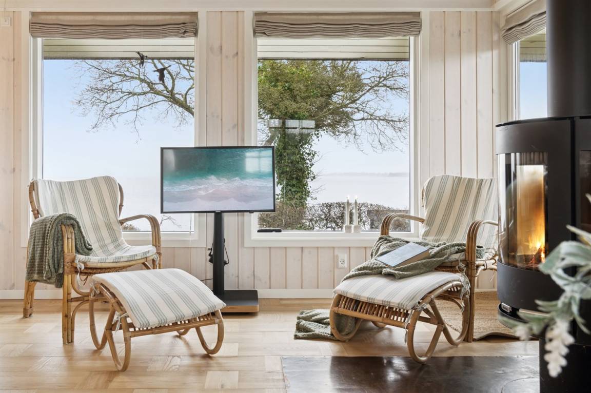Dieses herrliche Ferienhaus befindet sich an der Spitze der Halbinsel Tuse Næs in der ersten Reihe zum Rand des Wassers und bietet einen vollen Panoramablick über den Fjord und Orø. Bei klarem Wetter reicht der Blick sogar bis nach Hundested. Vom Küchen-Wohnbereich und dem Wohnzimmer aus kannst du durch das große Fensterband die schöne Aussicht genießen, die Segelboote beobachten und den Wechsel des Wetters verfolgen.