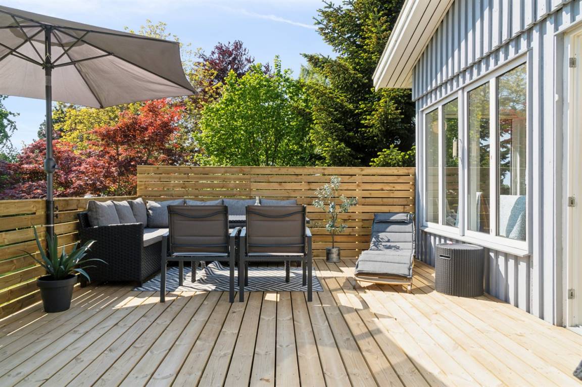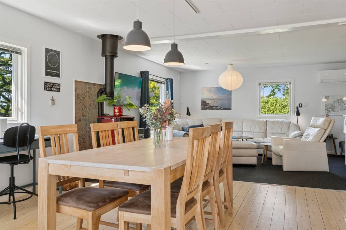 DraußenDie Ferienunterkunft liegt auf einem 1265 m² großen Gartengrundstück. Die Entfernung zum Fjord beträgt 600 m. Die nächste Einkaufsmöglichkeit liegt 2800 m entfernt. In einem Abstand von 16700 m gibt es einen Golfplatz. Es steht ein 40 m² Terrassenareal zur Verfügung. Zutritt zu einem Wintergarten. Es steht ein Grill zur Verfügung. Es steht ein Carport zur Verfügung. Parkplatz auf dem Grundstück.
