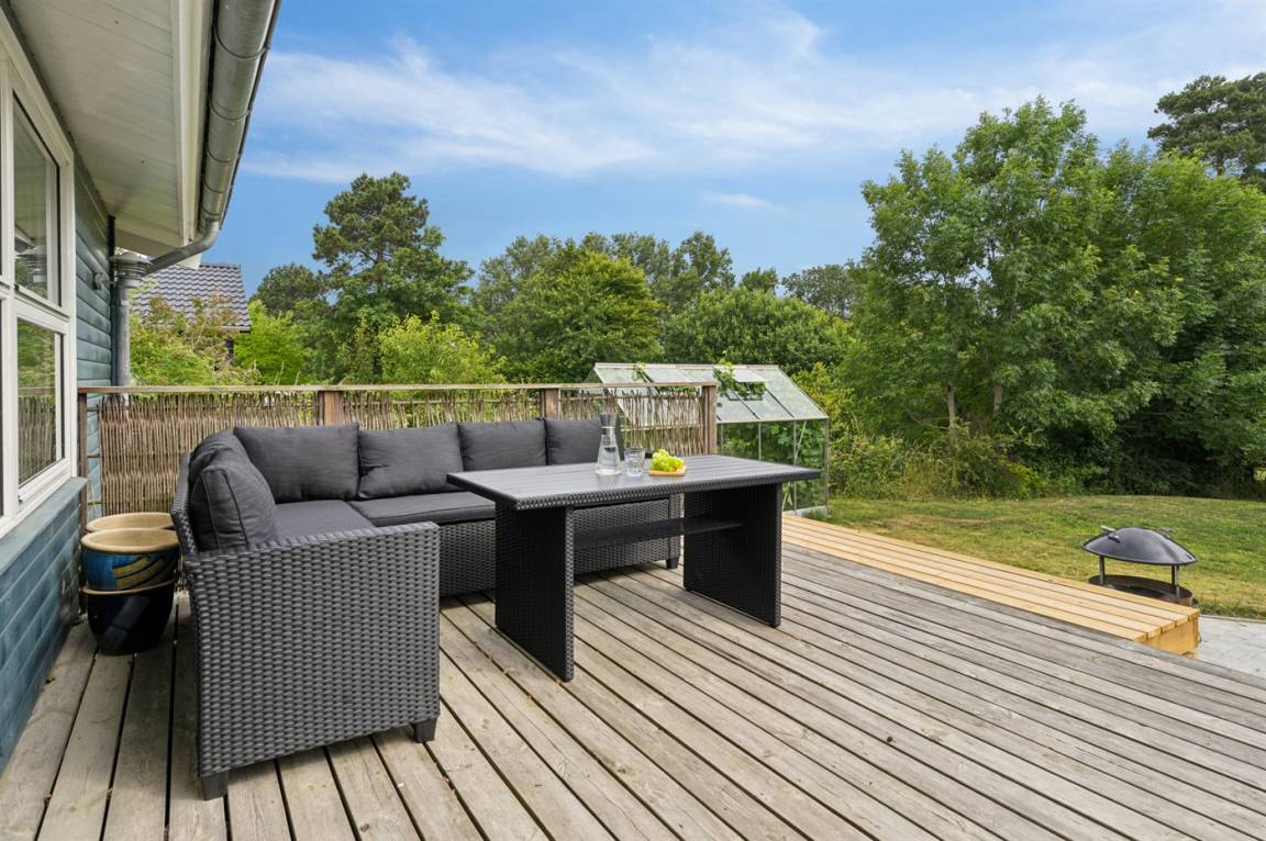 Der gemütliche Wohn- und Essbereich ist offen mit der Küche verbunden und bildet den Mittelpunkt des Hauses. Hier gibt es einen Kaminofen und Zugang zu einer großen, schönen Terrasse. Zudem steht dir eine Außenküche zur Verfügung, in der du unter freiem Himmel kochen kannst.