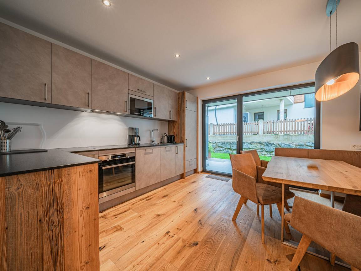 Hausbeschreibung : Dieses stilvolle Apartment bietet pure Entspannung und ist perfekt für Ihre Auszeit in den Bergen. Die Sauna lädt nach einem langen Tag zum Entspannen ein, während der gemütliche Wohnbereich und die moderne Küche keine Wünsche offenlassen. Im Sommer genießen Sie den privaten Außenbereich mit Garten, und im Winter wird das Apartment zur perfekten Basis für Ihr Skiabenteuer