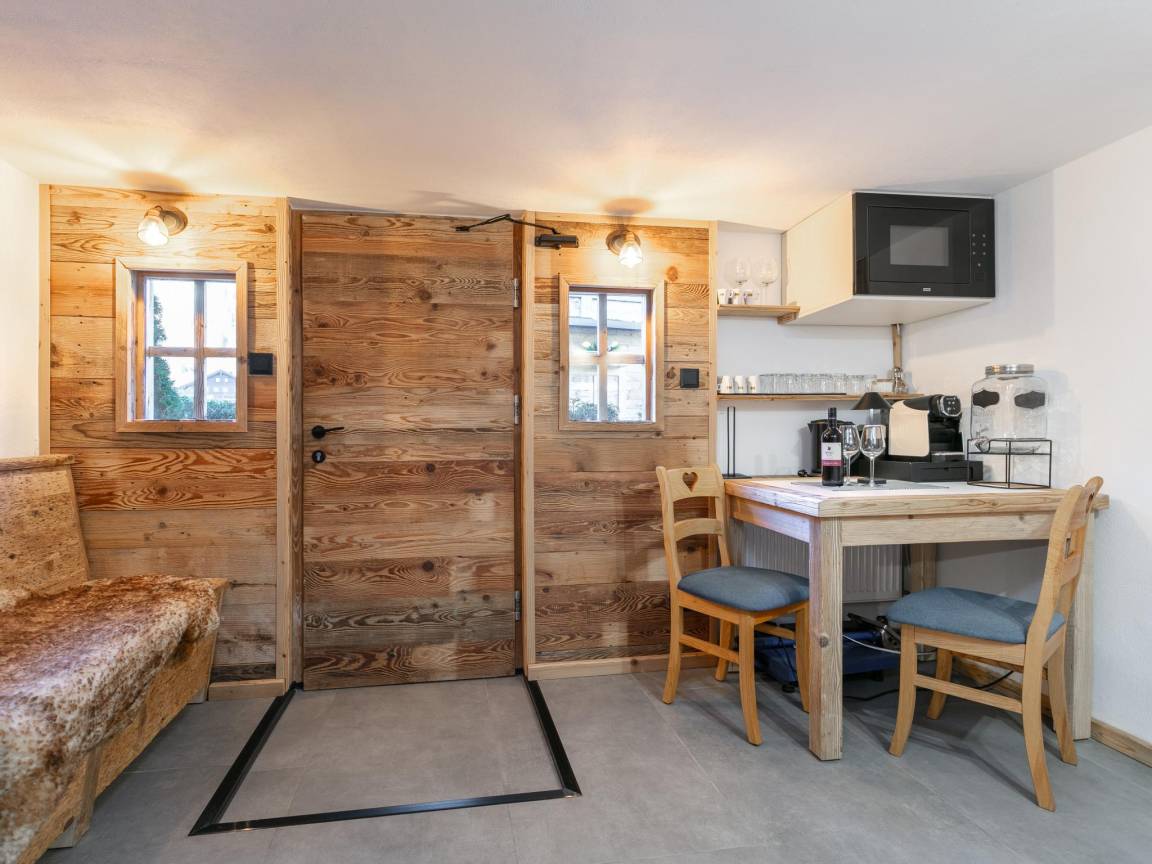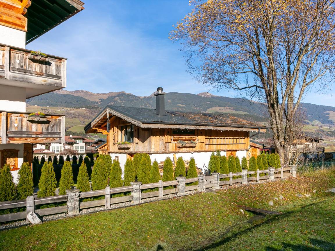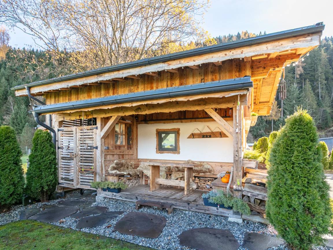 Hausbeschreibung : Ein charmantes Chalet für 7 Personen - ideal für Ihre stilvolle Auszeit in den Bergen! Das Chalet im alpin-rustikalen Stil bietet Platz für bis zu 7 Personen. Verbringen Sie gesellige Stunden im behaglichen Wohnraum mit Sichtdachstuhl. Zudem verfügt das Ferienhaus über eine voll ausgestattete offene Küche, 1 Schlafzimmer und 2 moderne Badezimmer. Die Highlights sind zum einen die Sauna wie auch die gemütliche überdachte Sitzecke im Freien