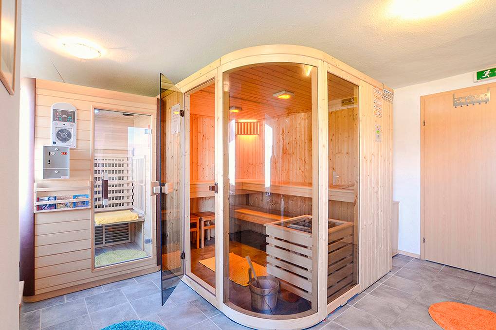 Parterre: Großer heller Aufenthaltsraum mit Esstischen, Sat-TV, Einbauküche (Backofen, 2 Spülmaschinen). Doppelzimmer. Kleiner gemütlicher Aufenthaltsraum mit Kaminofen, Sat-TV. Bad: 2 Duschen. 2 sep. WC. Sauna, Infrarotkabine mit Dusche, Waschmaschine, Trockner.