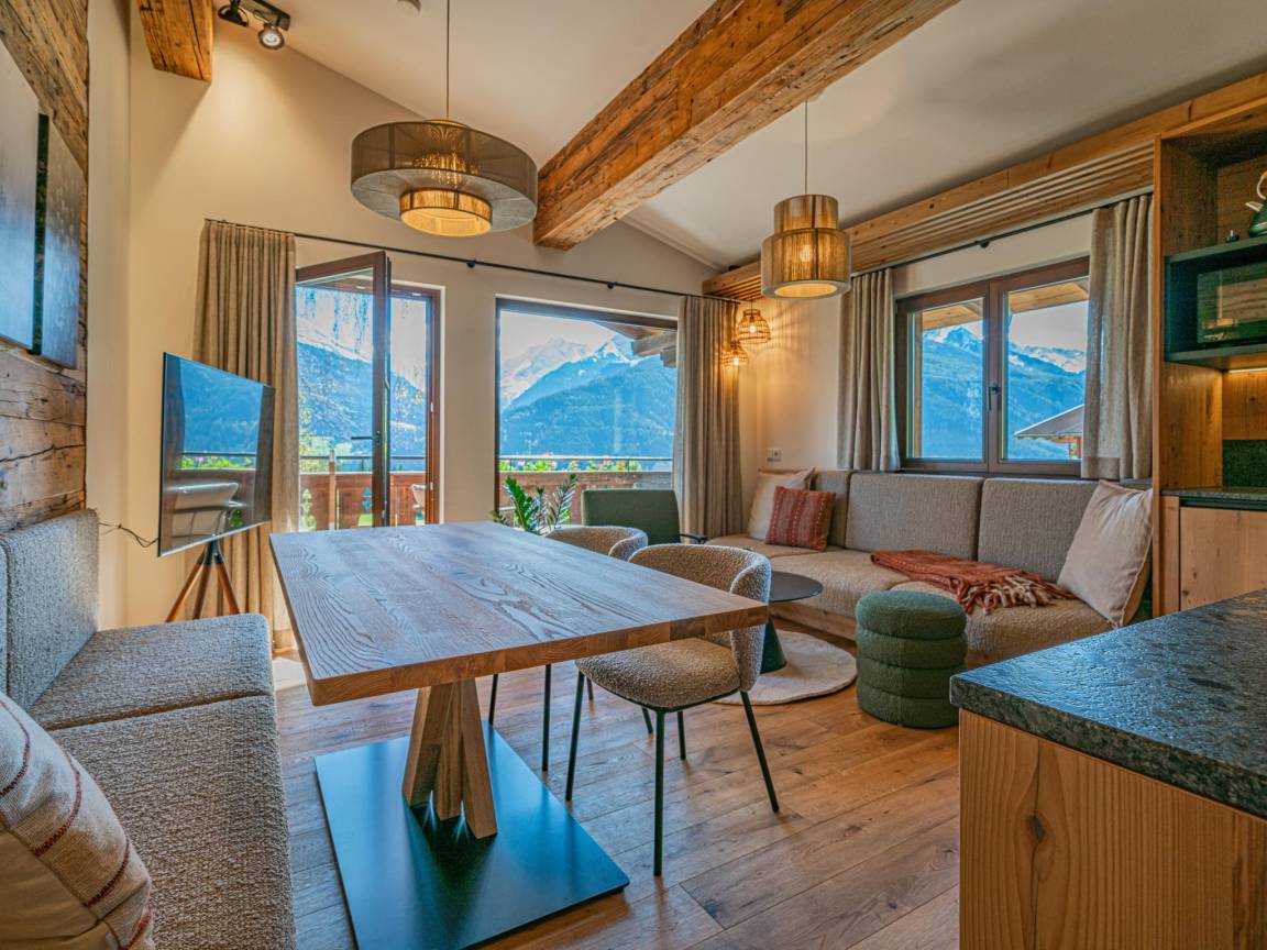 Hausbeschreibung : Im Chalet "Die Kramerei" erwartet Sie alpiner Luxus und Komfort. Die Wohn- und Schlafräume mit edlen Holzelementen laden zum Entspannen ein. Auf Liegen und Sitzgelegenheiten im Außenbereich genießen Sie die Aussicht und frisches Quellwasser aus der hauseigenen Quelle. Extras wie Frühstücksservice, tägliches Brötchenservice und direkter Ski-out bei Schnee lassen keine Wünsche offen