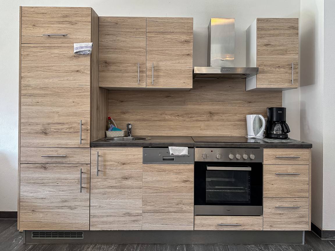 - Voll ausgestattete Küchen mit Backofen, Cerankochfeld, Kühlschrank, Wasserkocher, Filterkaffeemaschine & Toaster