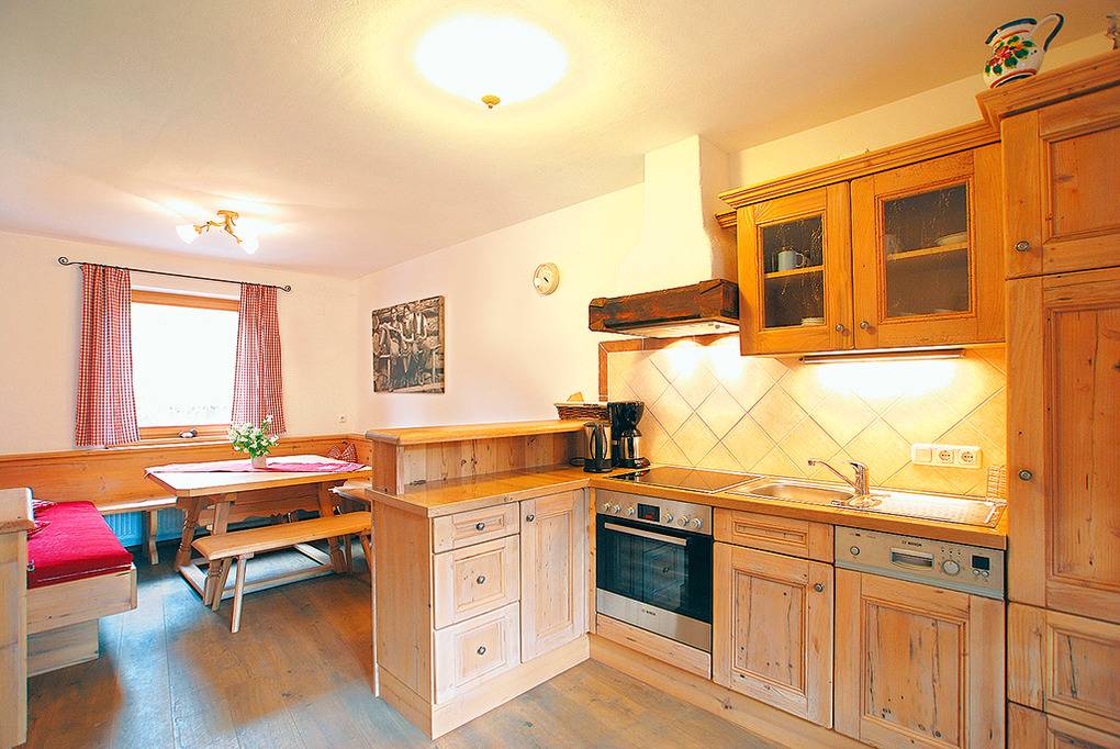 Haus: Typisches Tiroler Ferienhaus mit Sauna. Stilvolles 10-Zimmerhaus, 183 qm Wohnfläche über 3 Etagen. Das Haus besticht durch seine hochwertige, geschmackvolle Einrichtung mit vielen vom Vermieter (Tischlermeister) handgefertigten Möbelstücken. Zentralheizung. Parkplätze am Haus.