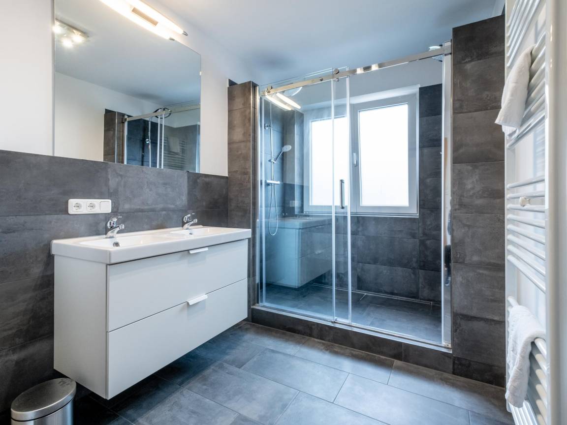 In der 1. Etage: Schlafzimmer mit Doppelbett , Schlafzimmer mit Einzelbett, Doppelbett , Schlafzimmer mit Doppelbett, Etagenbett , Durchgangsschlafzimmer mit Doppelbett , Badezimmer mit 2x Dusche, 2x Waschbecken , Badezimmer mit Badewanne, Dusche, Waschbecken, Toilette , Balkon