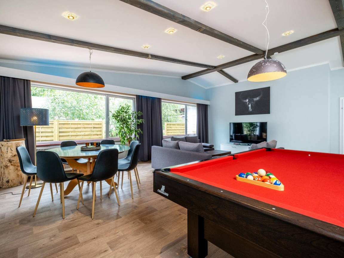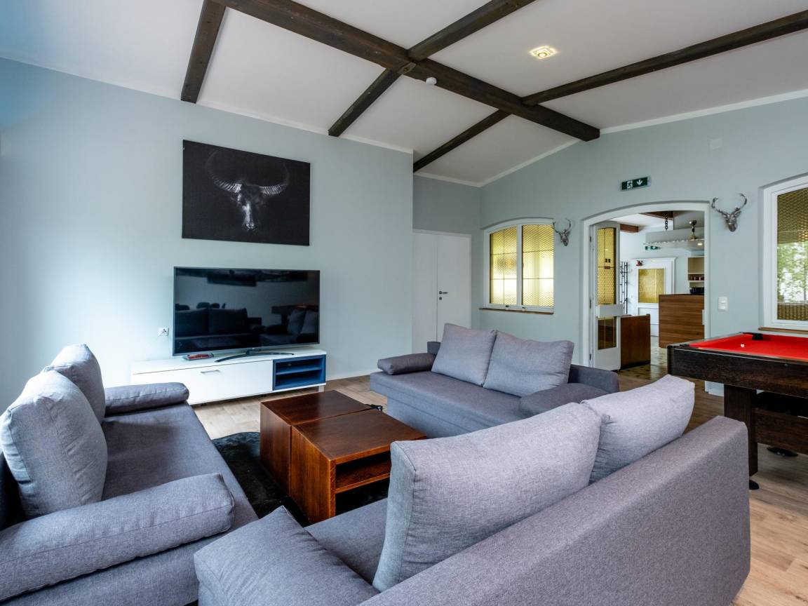 Layout : Parterre: Esszimmer mit TV, Esstisch , Küche mit Wasserkocher, Kochherd, Kaffeemaschine(Filter), Kaffeemaschine(pads), 2x Backofen, Geschirrspüler, 2x Kühlschrank , Toilette, Kino, Freizeitraum mit Billard , Bar, Beamer