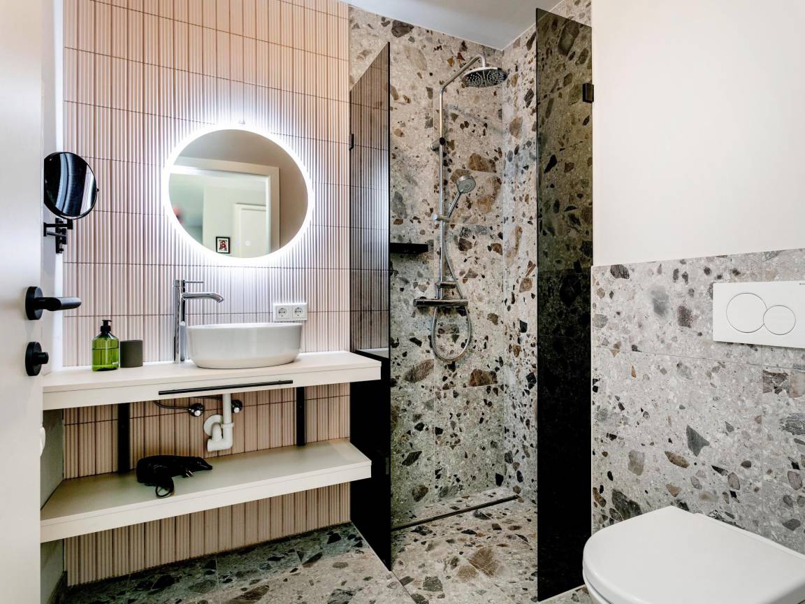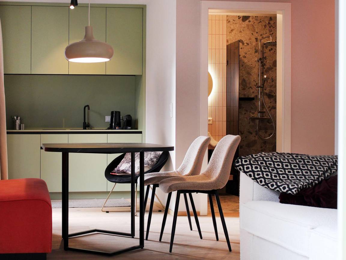 Hausbeschreibung : Willkommen in unserer Designer-Wohnung im Erdgeschoss! Modernes Design, hochwertiger Komfort und zentrale Lage bieten ein exklusives Wohngefühl. Das hauseigene Café nebenan lädt zum entspannten Frühstück oder auf einen Drink ein. Entdecken Sie urbanen Lifestyle und erstklassige Annehmlichkeiten. Willkommen zu Hause!