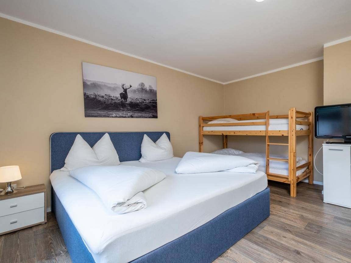In der 1. Etage: Schlafzimmer mit Doppelbett, Etagenbett , Schlafzimmer mit Doppelbett, Etagenbett , Schlafzimmer mit Einzelbett, Doppelbett, Etagenbett , Badezimmer mit Dusche, Waschbecken , Badezimmer mit 2x Dusche, 2x Waschbecken, Toilette , Balkon