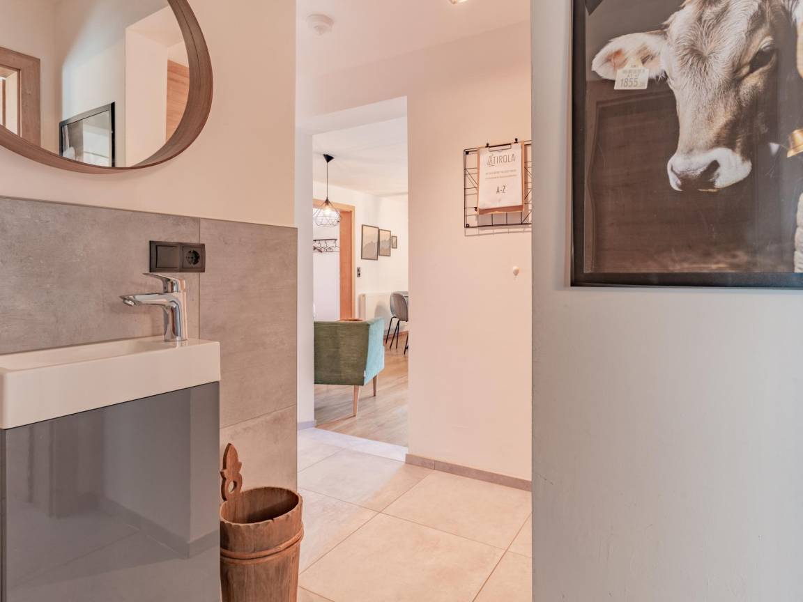 Hausbeschreibung : Das Appartement "Hansl" im Tirola Stadl lässt keine Wünsche offen. Sie haben eine großzügige Unterkunft mit vollausgestatteter Küche, großem Badezimmer mit Dusche und WC, separatem WC, große Schlafzimmer mit komfortablen Betten und einem gemütlichen Wohn-/Esszimmer zum gemeinsamen Verweilen. Im Garten stehen noch eine Grillhütte und im Keller eine Sauna (beide zur gemeinschaftlichen Nutzung mit anderen Gästen) zur Verfügung