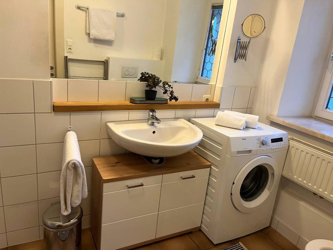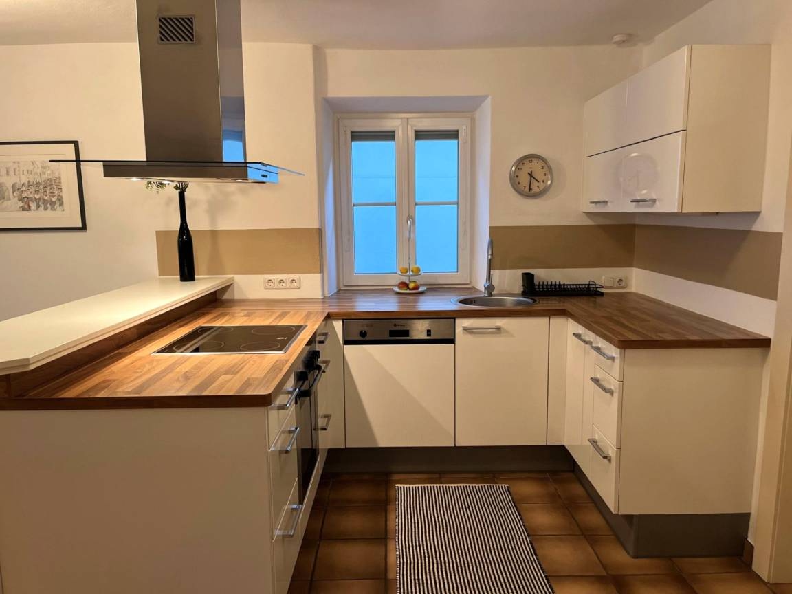 Layout : In der 1. Etage(privater Eingang): offene Küche mit Wasserkocher, Toaster, Kochherd(4 Kochplatten, Ceranfeld, elektrisch), Dunstabzugshaube, Kaffeemaschine(Filter), Backofen, Geschirrspüler, Kühl-/Gefrierkombination , Wohn/Esszimmer mit Doppelunterschiebebett(180 x 200 cm), TV(Flatscreen), Esstisch , Schlafzimmer mit Doppelbett(160 x 200 cm) , Badezimmer mit Waschbecken, Dusche, Toilette, Waschmaschine, Föhn , Balkon mit Esstisch(2 Personen)