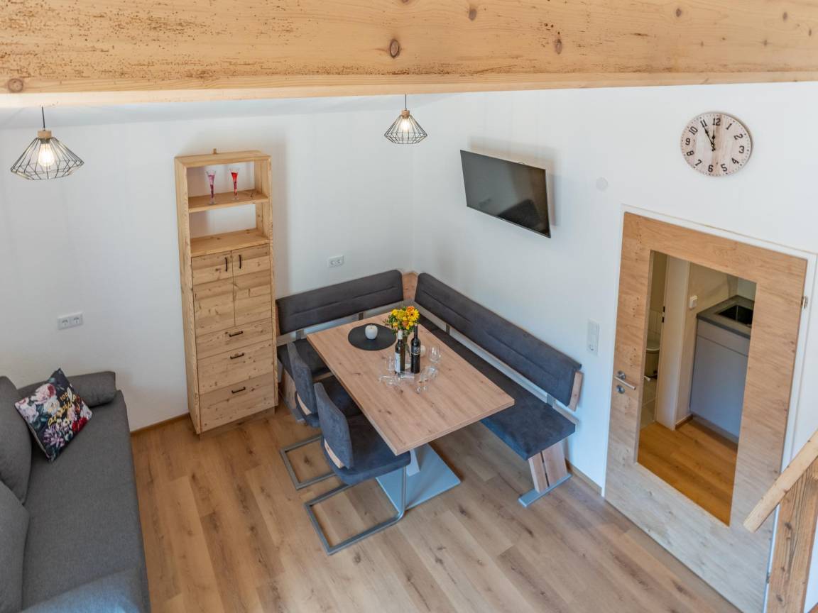 Hausbeschreibung : Die Lage könnte zentraler nicht sein: Vier Fußminuten von der Talstation der Bergbahn Hopfgarten und vom unmittelbaren Skivergnügen und Wanderabenteuer entfernt. Die smart eingerichtete Unterkunft bietet bis zu vier Personen viel Platz und verfügt über eine vollausgestattete Küche, ein Wohnschlafzimmer, eine Galerie mit Schlafmöglichkeit, Bad mit WC und sonnigen Balkon. Ganz im Sinne der Nachhaltigkeit ist das Appartement bequem mit dem Bus oder Zug zu erreichen (Entfernung zum Bahnhof ca. 250m)