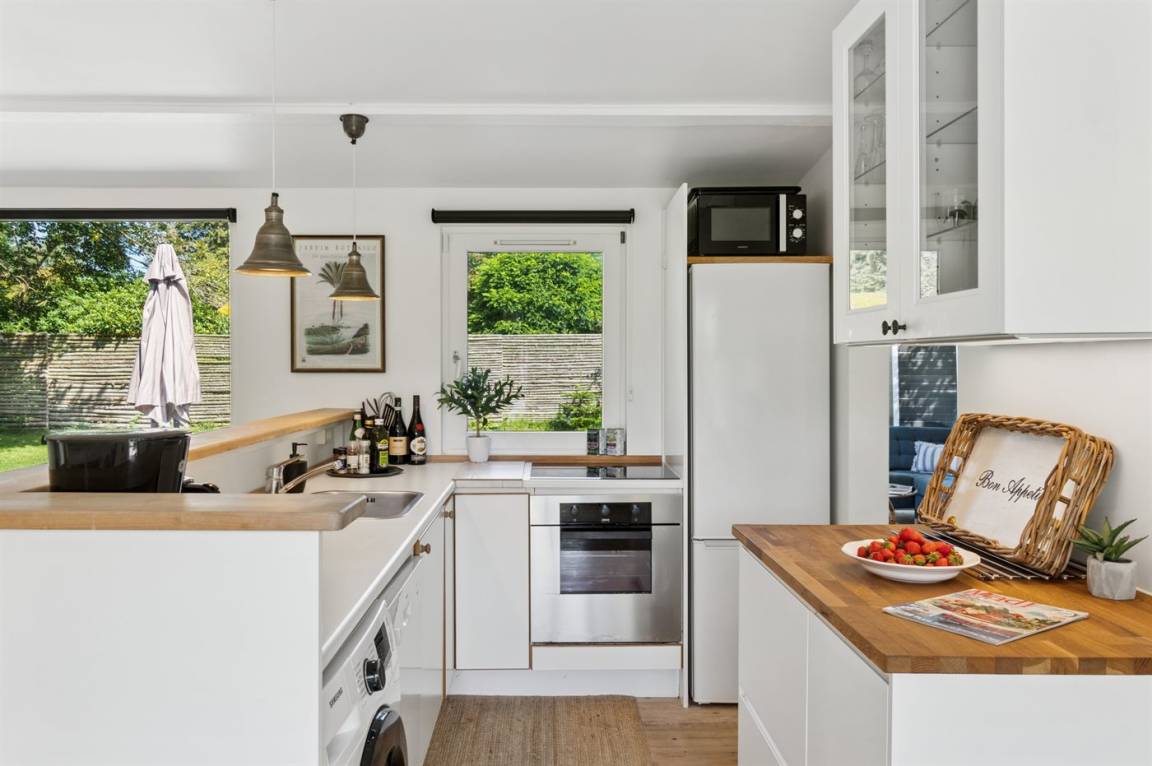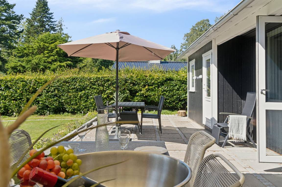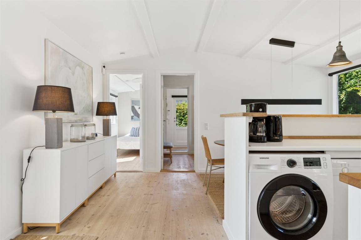 Ein gepflegtes Ferienhaus in einer ruhigen und beliebten Stadtviertel in Hornbæk – nur wenige Gehminuten vom Strand, der Stadt und wunderschöner Natur entfernt. Das Haus ist im klassischen Ferienhausstil gebaut und wirkt hell und funktional mit einem durchdachten Grundriss.
