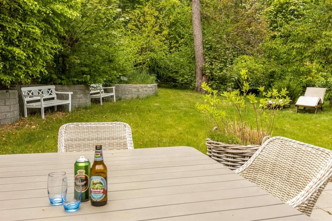 Auf der überdachten Terrasse könnt ihr auf dem Grill kochen, und im herrlichen Garten gibt es viele Möglichkeiten zur Entspannung.