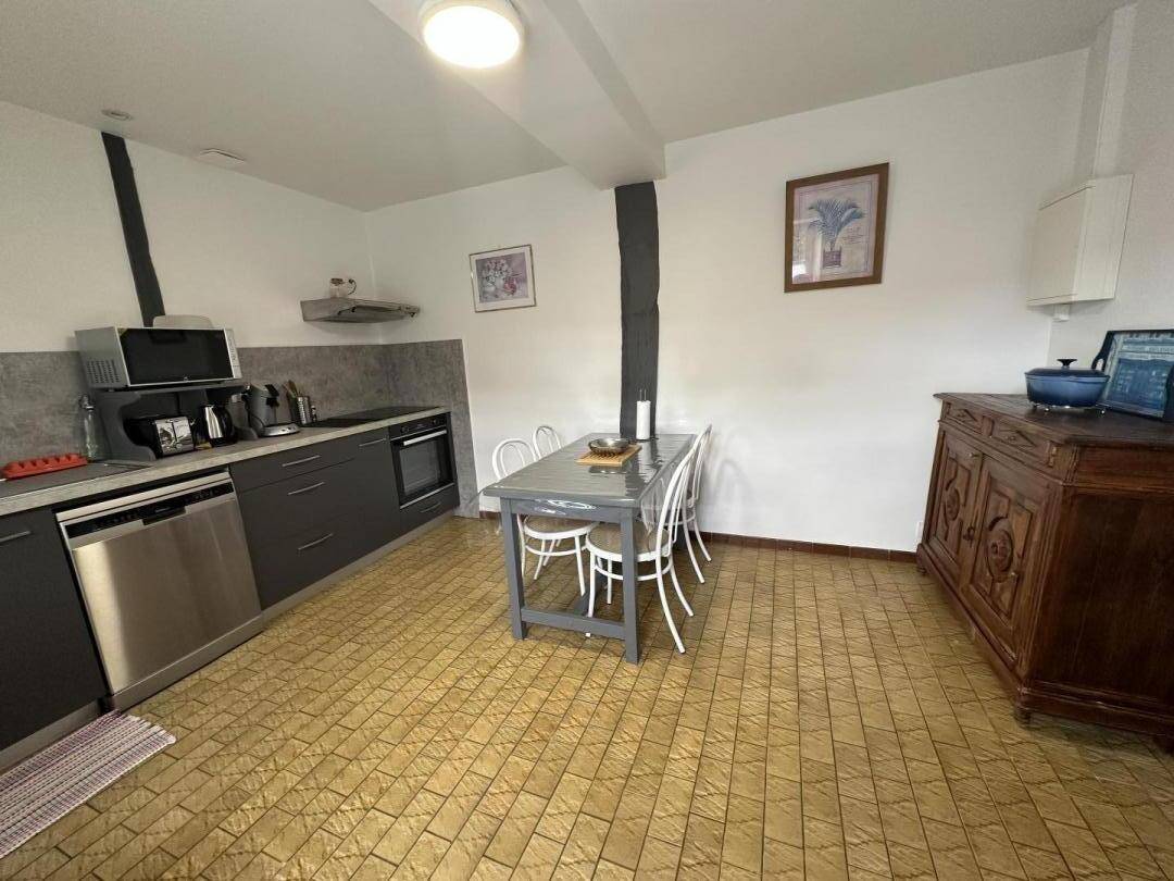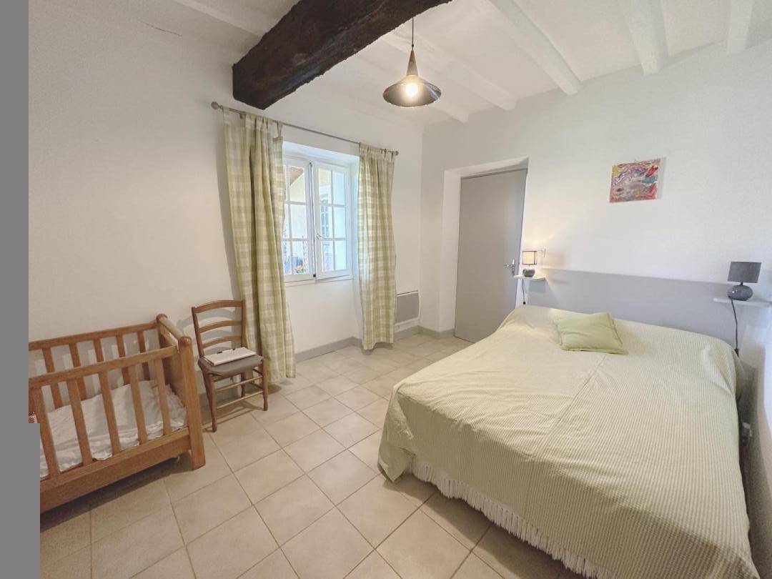 Gîte in einer Gruppe landwirtschaftlicher Gebäude, die ebenerdig eingerichtet sind und an den Eigentümer angrenzen. Es besteht aus einer separaten Küche (Gasherd mit 4 Gasflammen und Gasofen, kombinierter Kühlschrank mit Gefrierfach, Mikrowelle), einem Wohnbereich, der als Wohnzimmer-Entspannungsbereich dient (Holzofen, Fernseher, Sofa), einem Badezimmer mit Badewanne und separates WC. Der Schlafbereich verfügt über 3 Schlafzimmer (2 Doppelbetten, 2 Einzelbetten, 1 Kinderbet