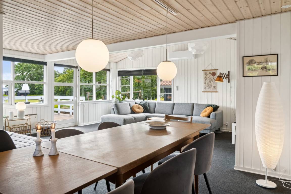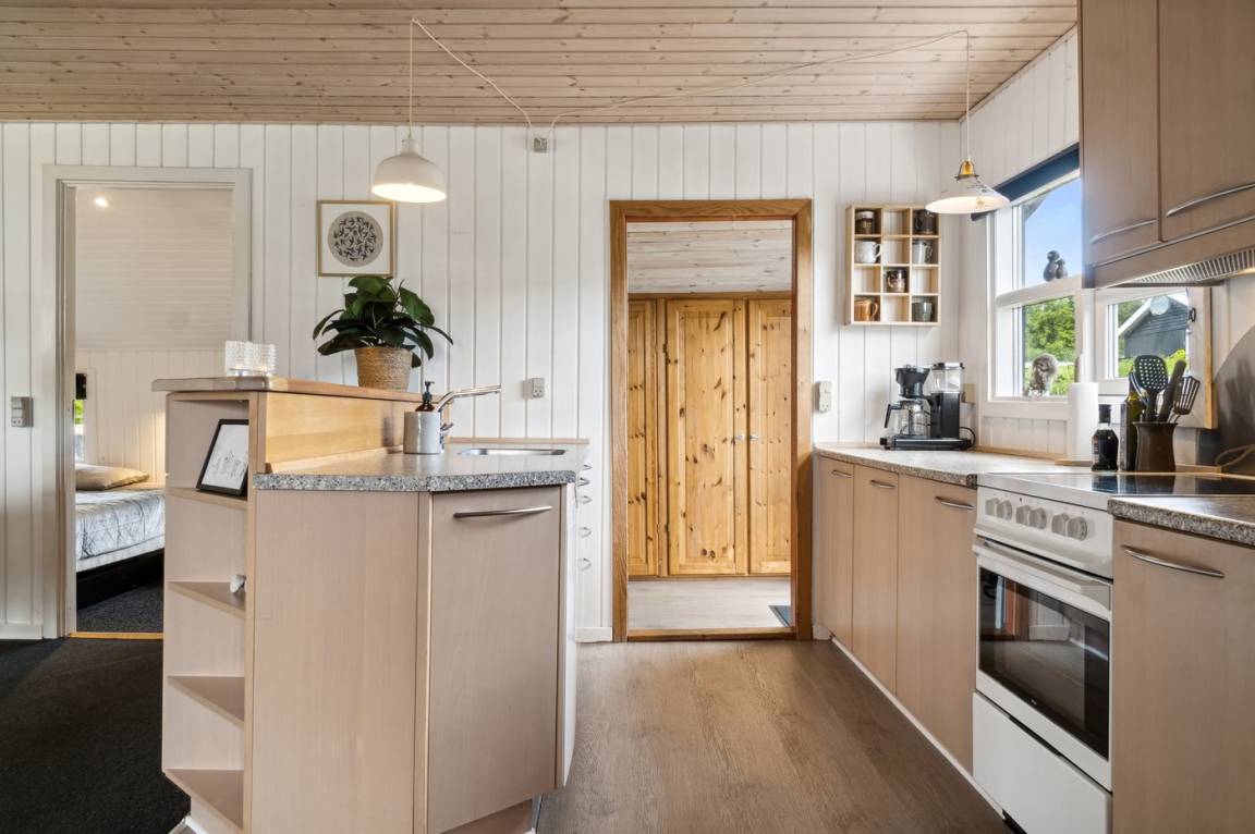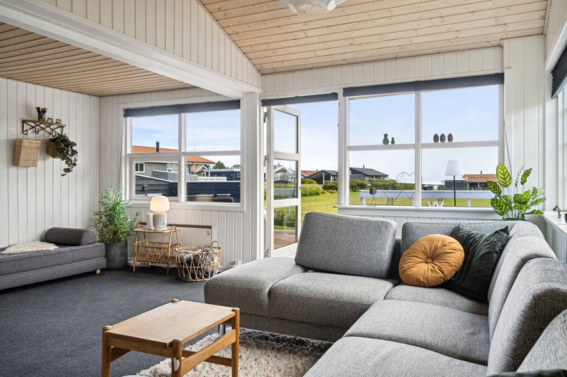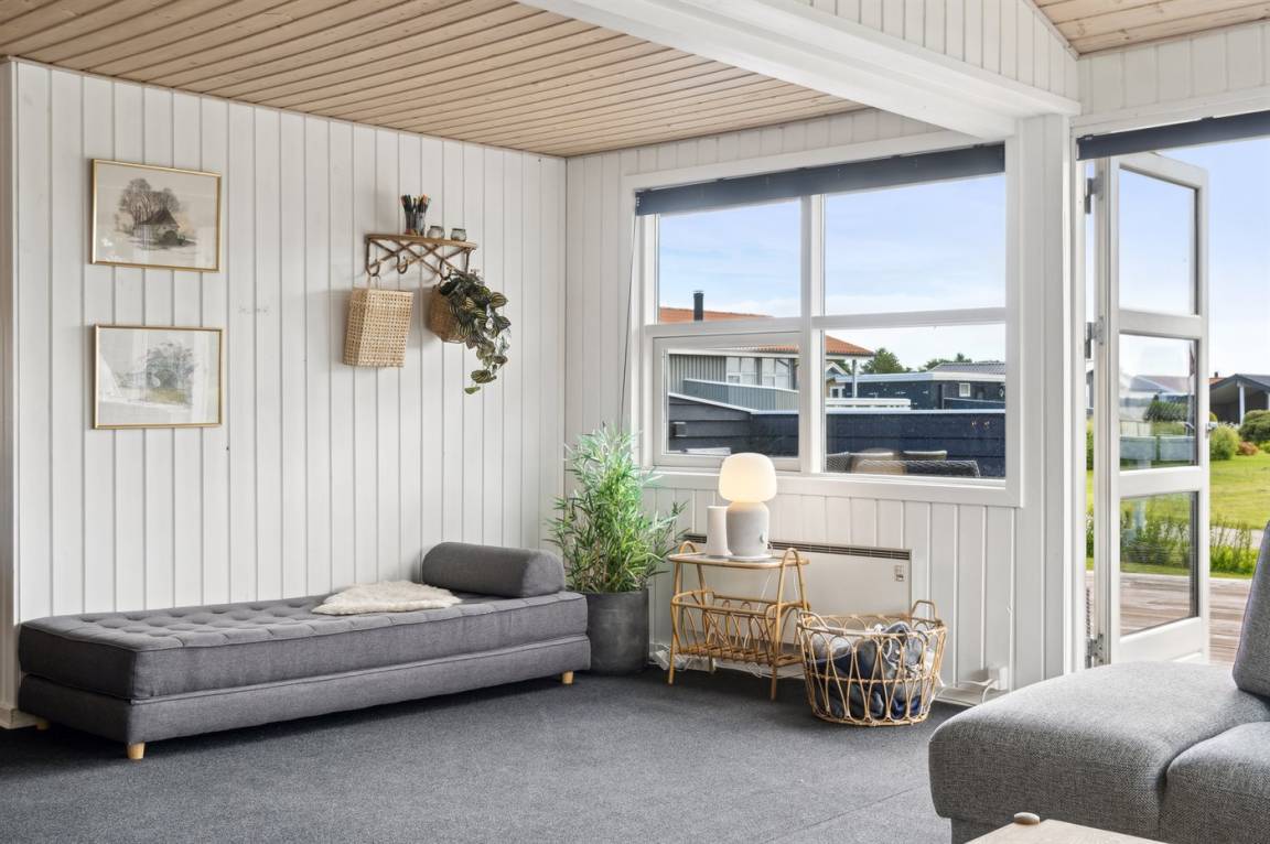 Innen ist das Ferienhaus in gutem Zustand, und die Einrichtung ist hell und stimmungsvoll mit einer feinen Raumaufteilung, die gut für zum Beispiel eine oder zwei kleinere Familien mit Kindern geeignet ist, oder du kannst die Großeltern mit in den Urlaub einladen. Alles in allem ein Ferienhaus, das die besten Voraussetzungen für einen schönen Urlaub bietet.