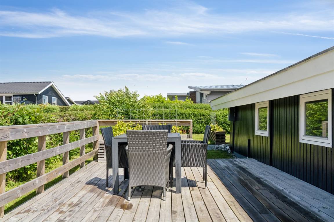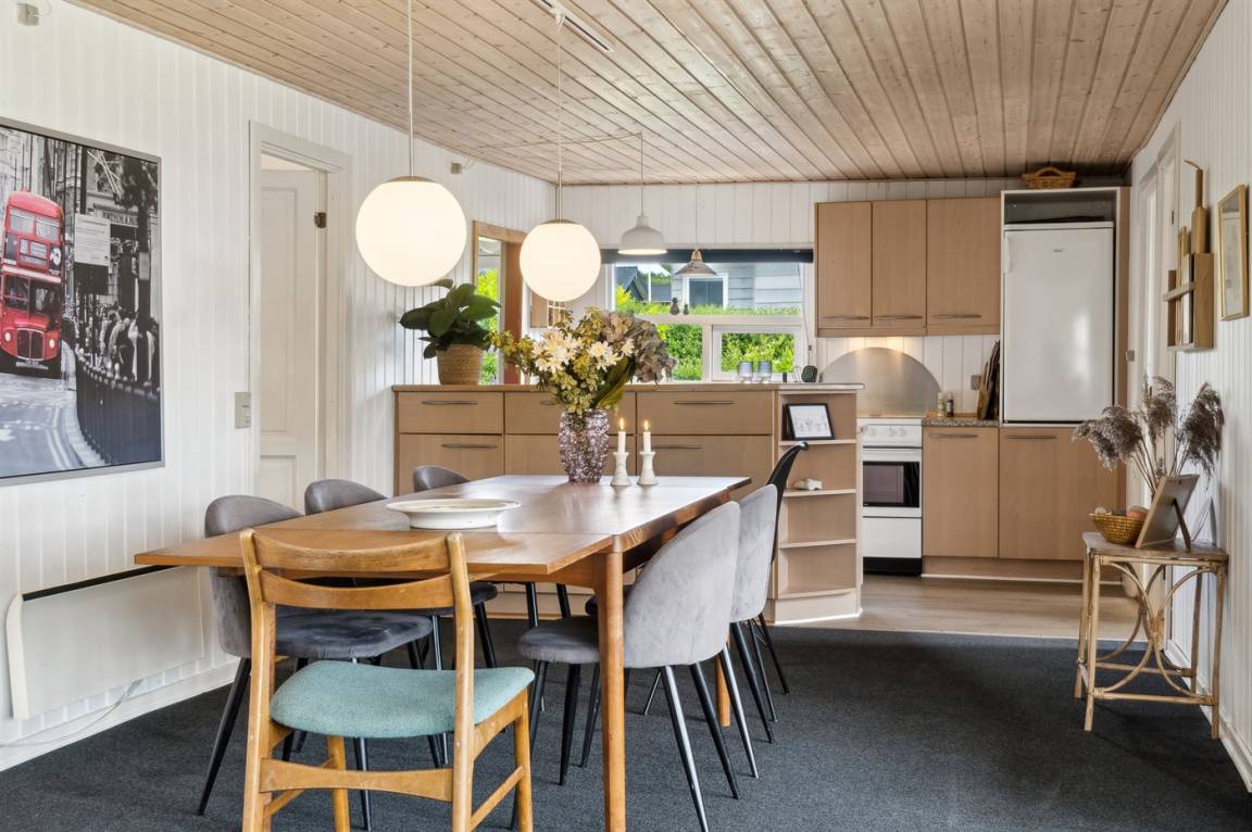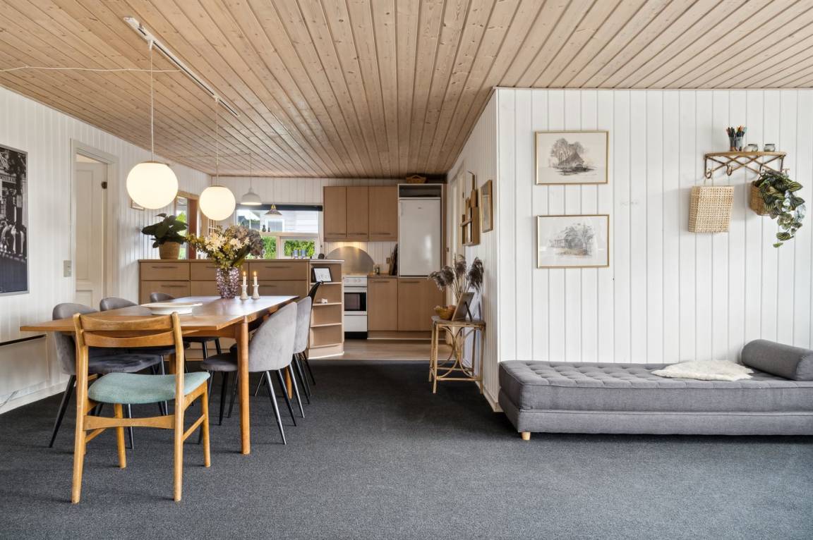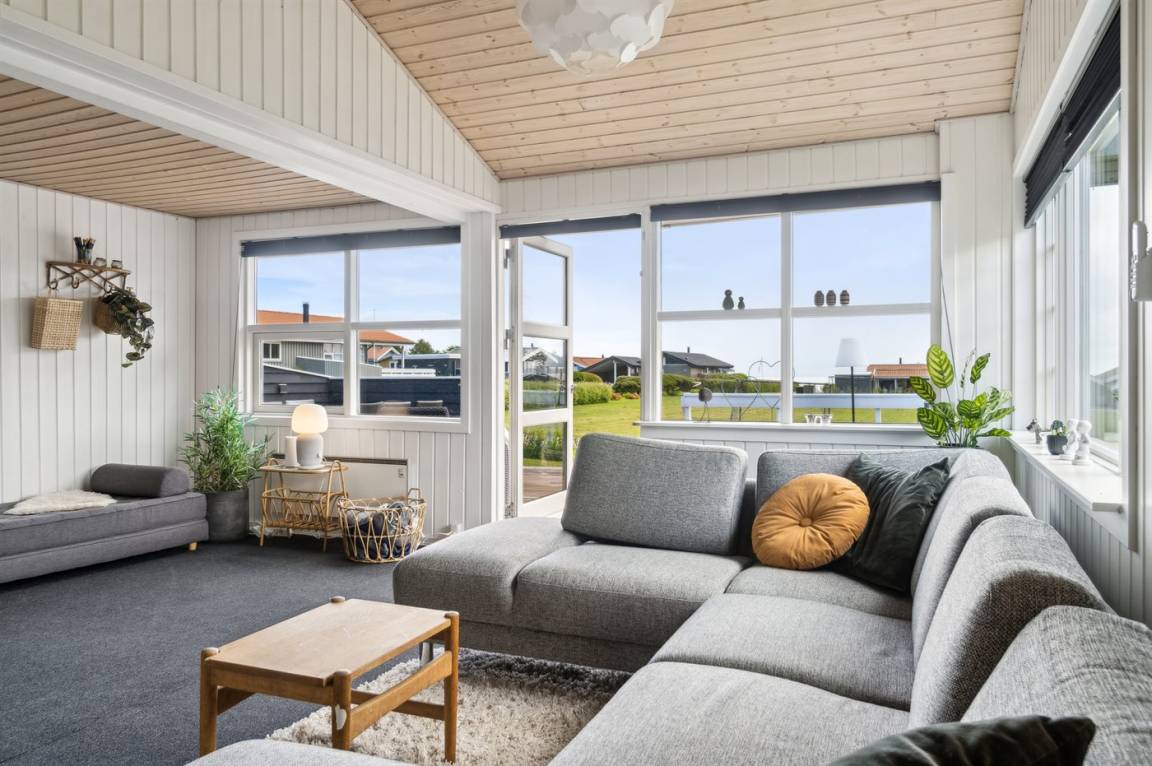 Innen ist das Ferienhaus in gutem Zustand, und die Einrichtung ist hell und stimmungsvoll mit einer feinen Raumaufteilung, die gut für zum Beispiel eine oder zwei kleinere Familien mit Kindern geeignet ist, oder du kannst die Großeltern mit in den Urlaub einladen. Alles in allem ein Ferienhaus, das die besten Voraussetzungen für einen schönen Urlaub bietet.