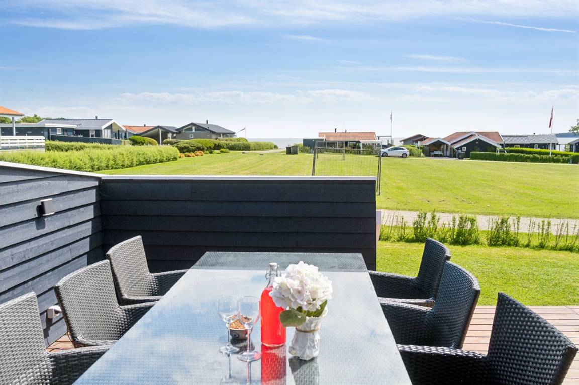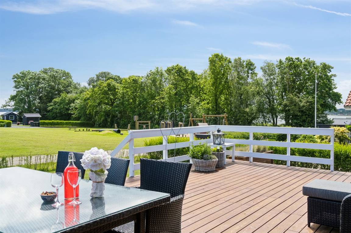 Das Ferienhaus bietet schöne Terrassenbereiche, die sich auf beiden Seiten des Hauses befinden, so dass es immer möglich ist, eine windgeschützte Ecke zu finden, in der man die Sonne genießen kann. Hier ist es ideal, eine Tasse Kaffee oder ein Glas Wein zu genießen, während die Kinder auf dem Spielplatz spielen.
