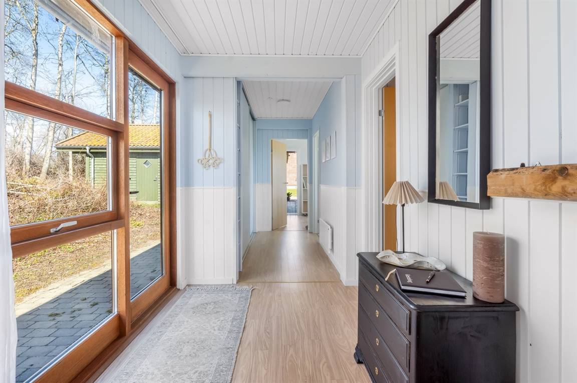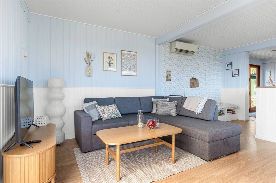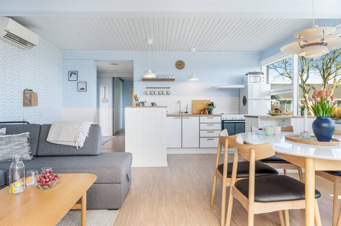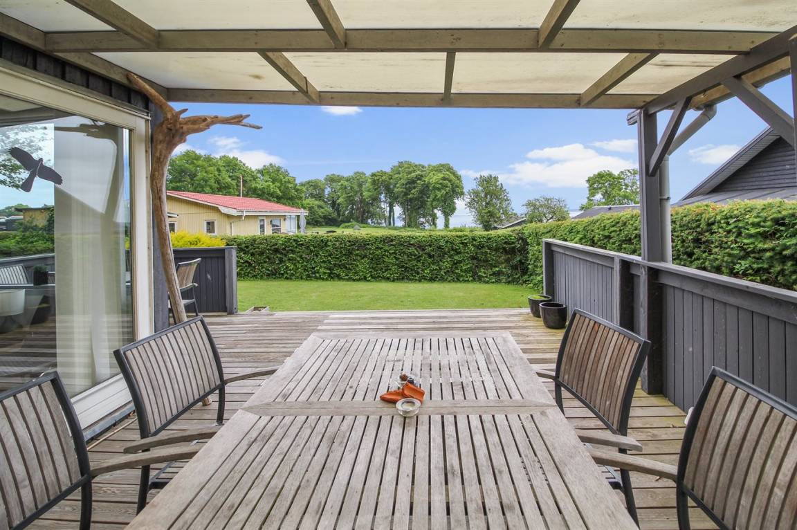 Mit Meeresblick sowohl vom Haus als auch vom Grundstück finden Sie dieses Ferienhaus auf einem von Büschen umgebenen Grundstück. Das Haus liegt dicht an einem kinderfreundlichen Badestrand sowie einem gemeinsamen Spielplatz, einem Ballplatz und einer Petanquebahn.