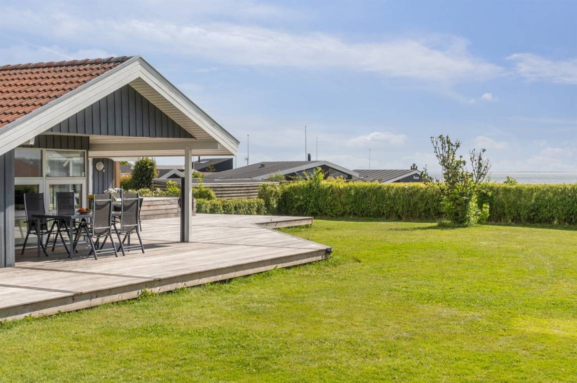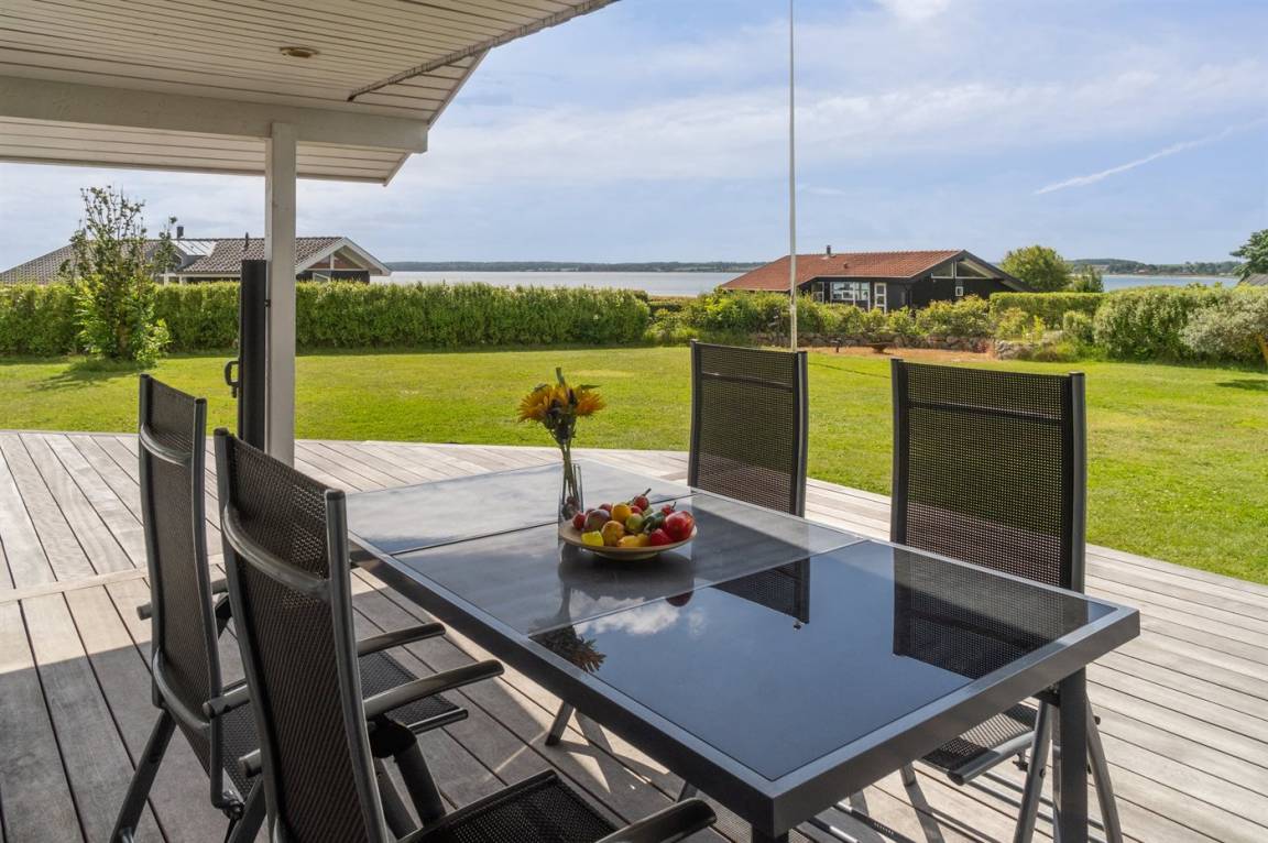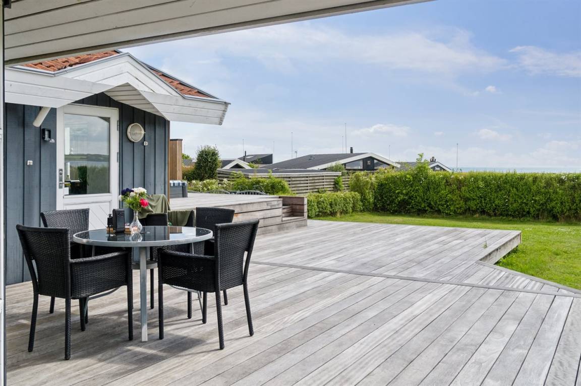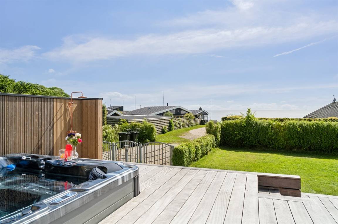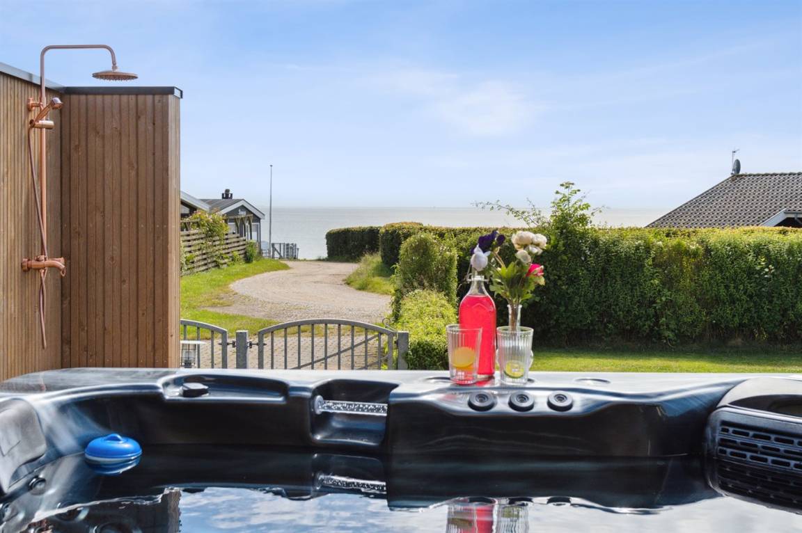 Die Lage des Hauses ist wirklich einzigartig, mit einem feinen Blick auf das Meer und das schöne Feriengebiet. Das Ferienhaus bietet eine gute Terrasse, die teilweise überdacht ist und das ganze Haus umgibt, so dass man immer eine windgeschützte Ecke findet, in der man die Sonne genießen kann. Hier ist es ideal, eine Tasse Kaffee oder ein Glas Wein zu genießen. Das Highlight der großen Terrasse ist es, im großen Whirlpool zu sitzen und über das Wasser zu schauen und einfach diese ruhige und malerische Umgebung zu genießen.