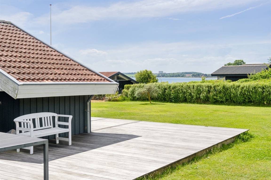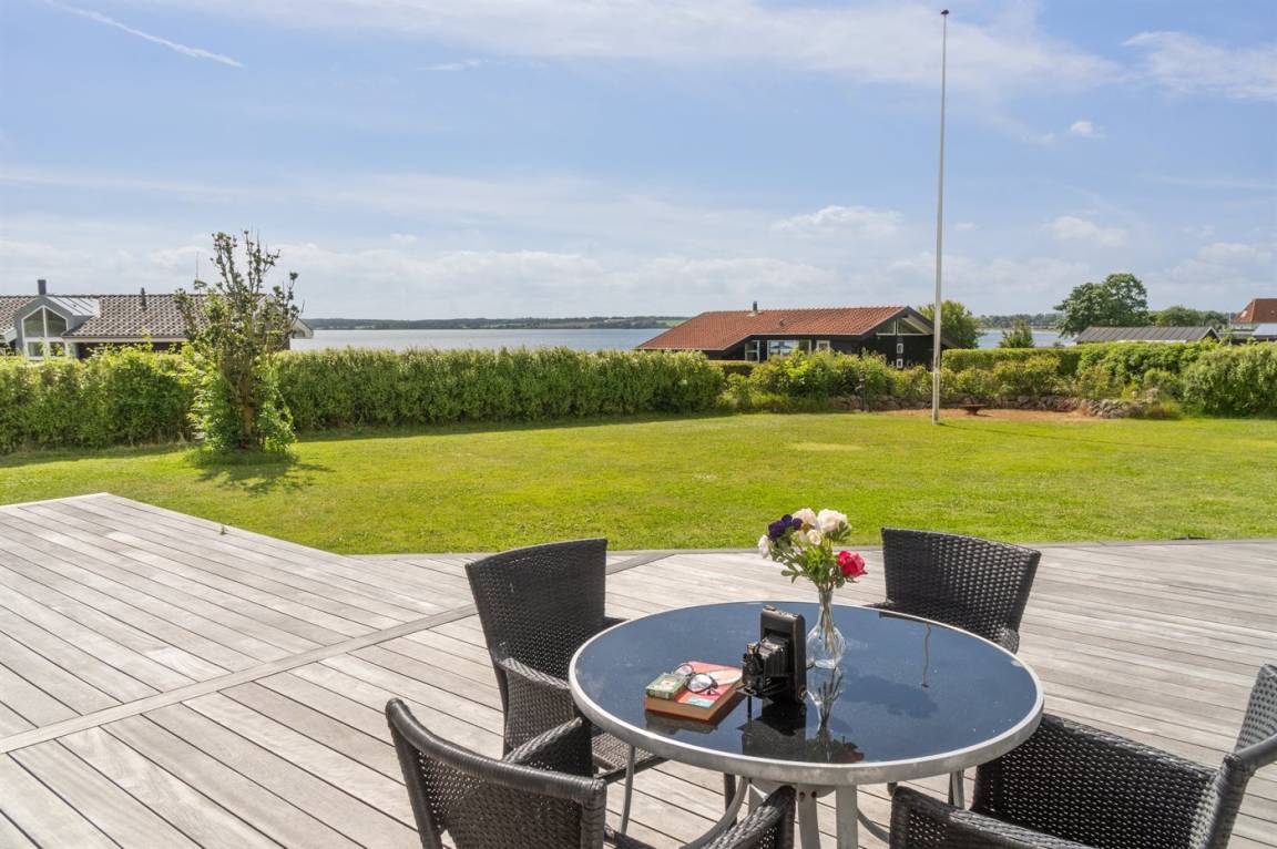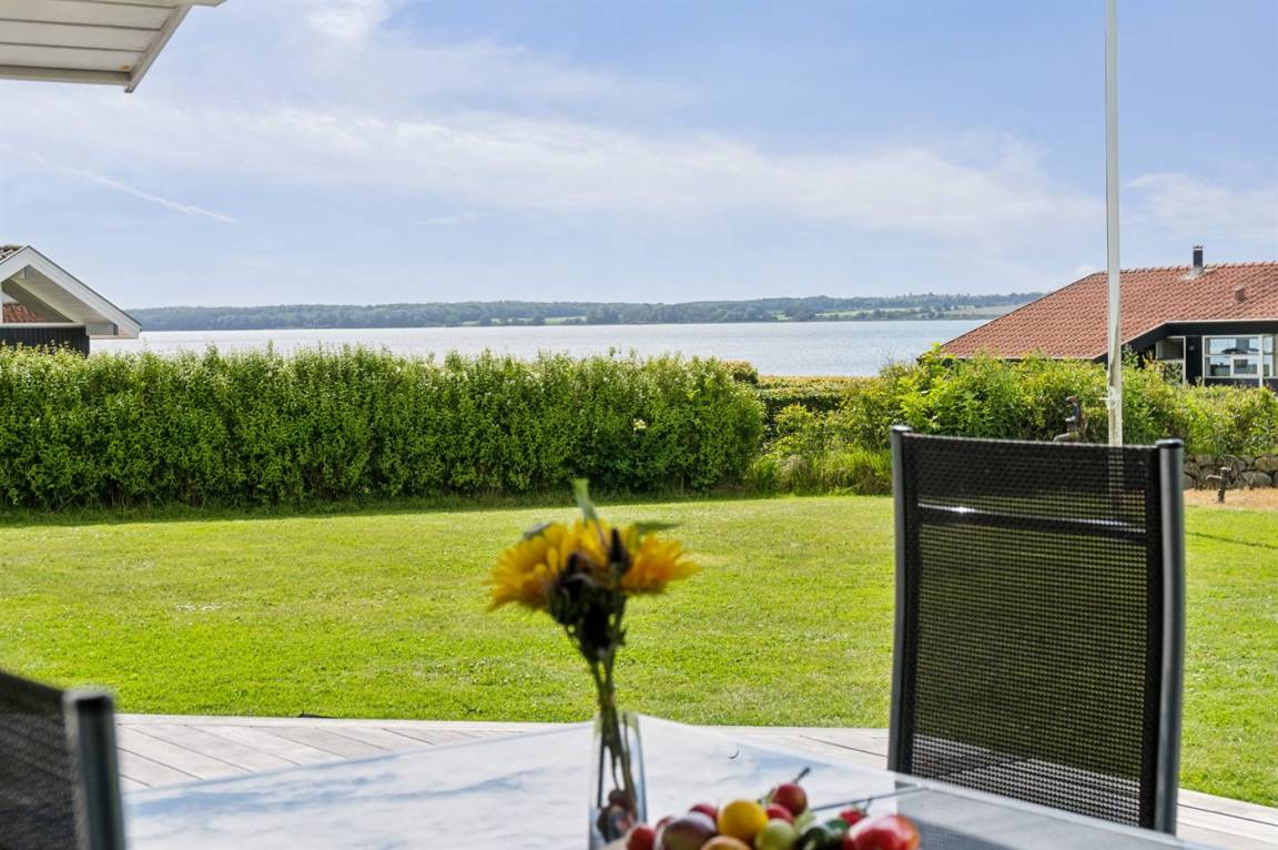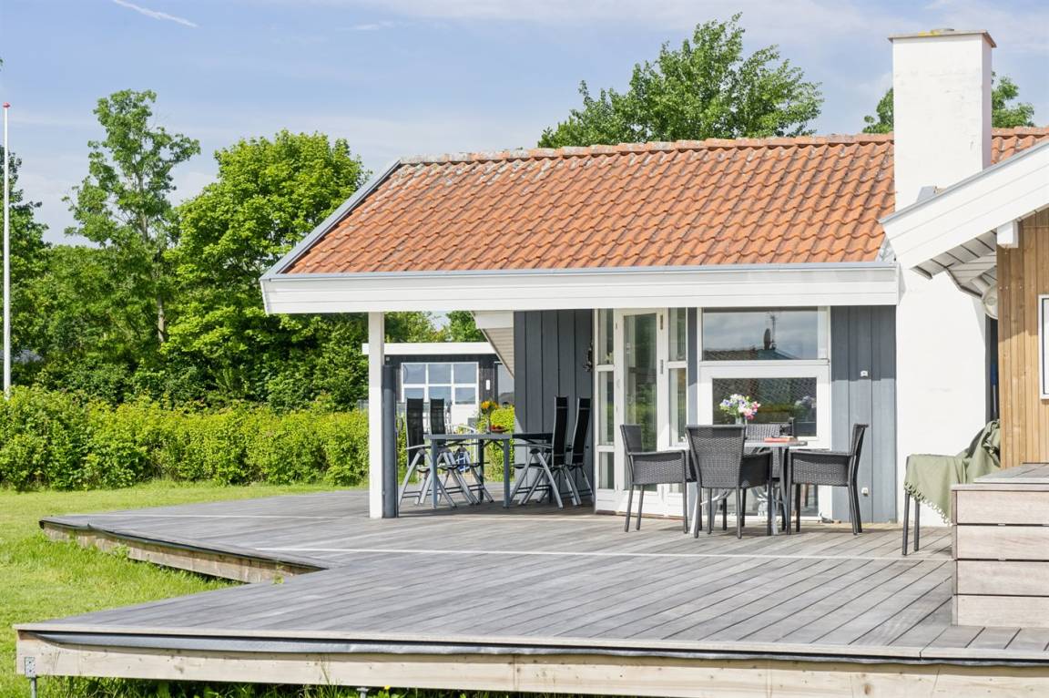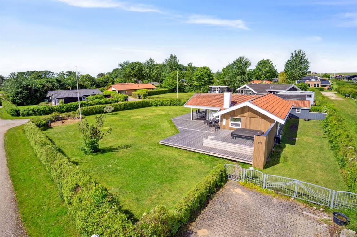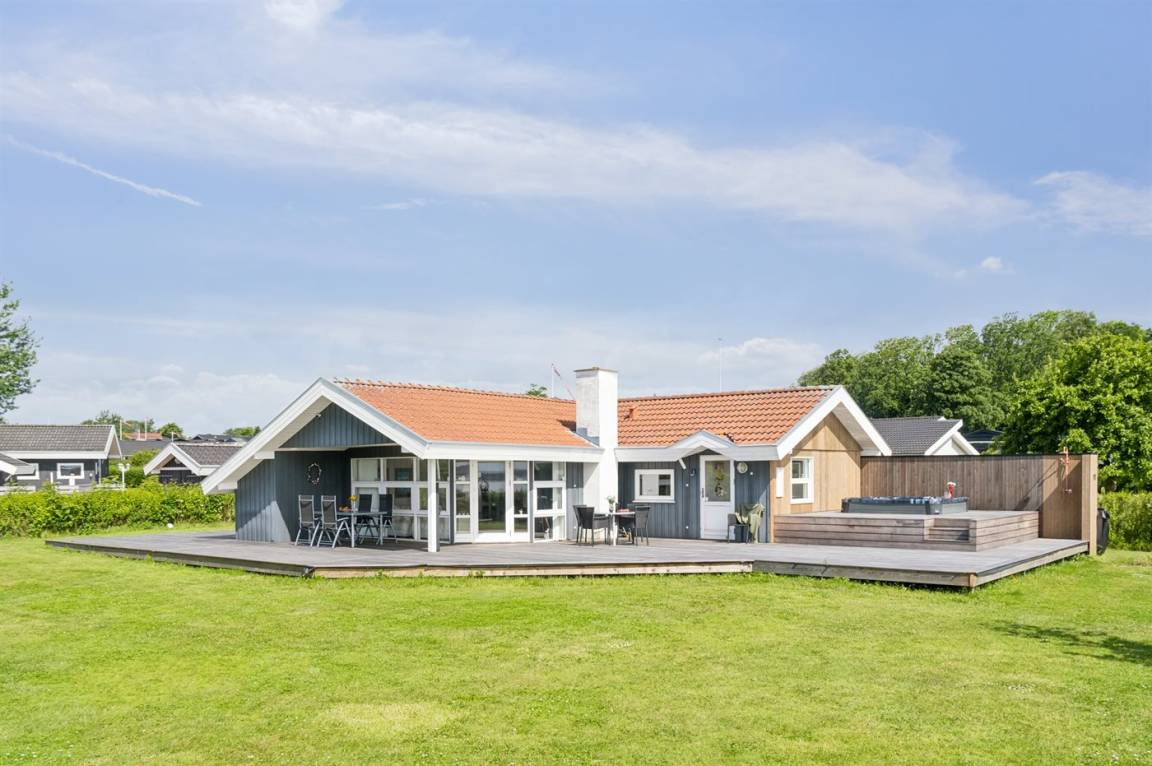 Die Lage des Hauses ist wirklich einzigartig, mit einem feinen Blick auf das Meer und das schöne Feriengebiet. Das Ferienhaus bietet eine gute Terrasse, die teilweise überdacht ist und das ganze Haus umgibt, so dass man immer eine windgeschützte Ecke findet, in der man die Sonne genießen kann. Hier ist es ideal, eine Tasse Kaffee oder ein Glas Wein zu genießen. Das Highlight der großen Terrasse ist es, im großen Whirlpool zu sitzen und über das Wasser zu schauen und einfach diese ruhige und malerische Umgebung zu genießen.
