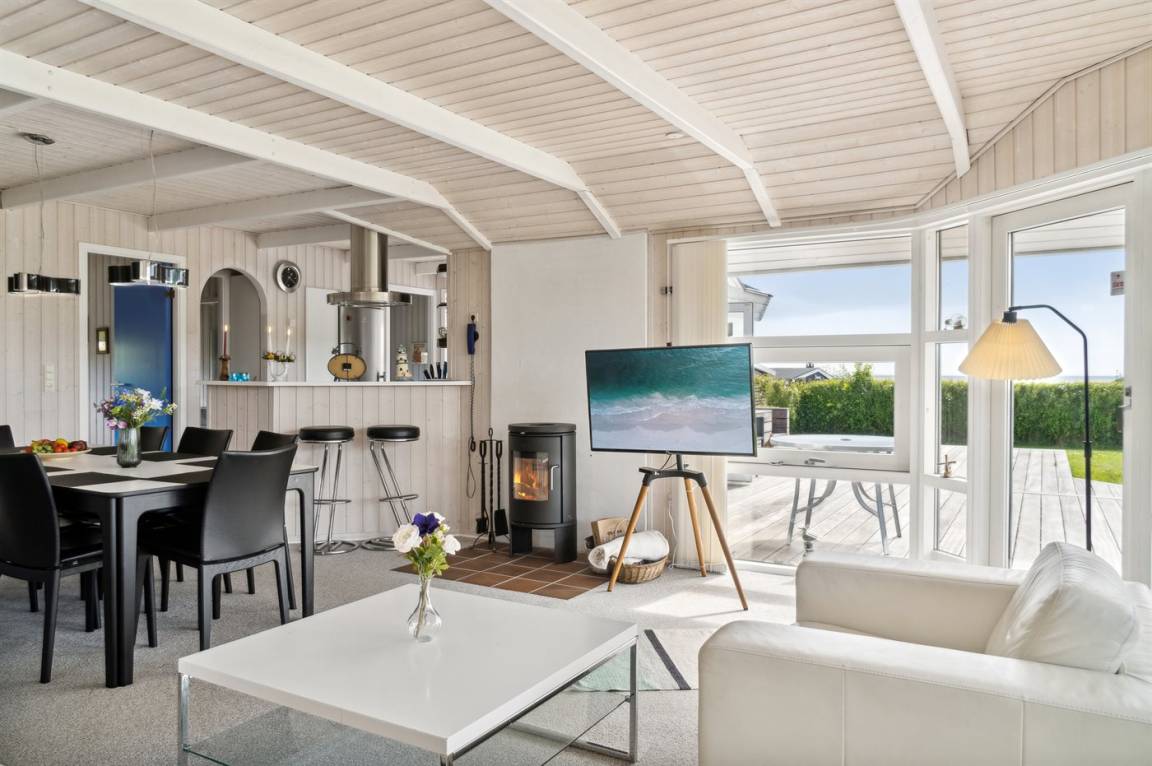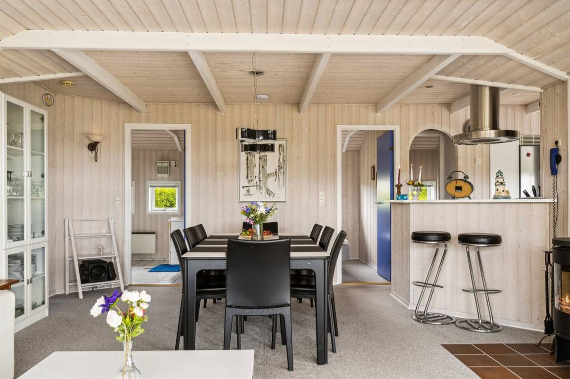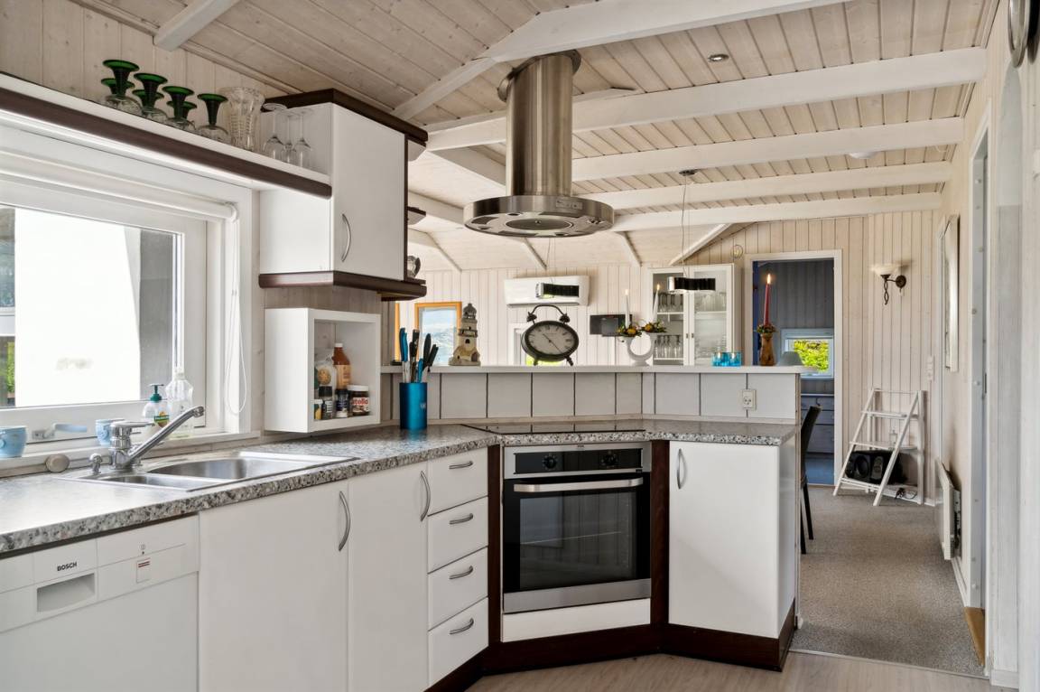 Innen präsentiert sich das Ferienhaus in gutem Zustand, und die Einrichtung ist hell und stimmungsvoll, mit einem feinen Grundriss, der gut für zum Beispiel eine oder zwei kleine Familien mit Kindern geeignet ist, oder man kann die Großeltern zum Urlaub einladen. Alles in allem ein Ferienhaus, das die besten Voraussetzungen für einen schönen Urlaub bietet.