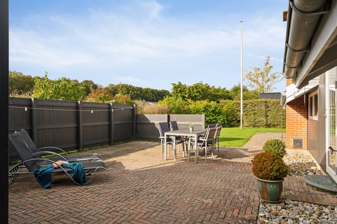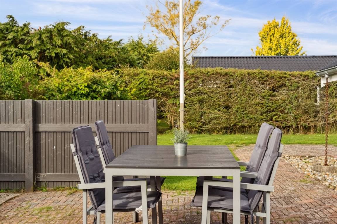 Das Ferienhaus liegt auf einem schönen Grundstück mit einem überschaubaren Garten. Es gibt eine teilweise überdachte Terrasse, auf der man häufig ein windgeschütztes Plätzchen findet, um die Sonne zu genießen, ein Glas Wein oder eine Tasse Kaffee zu trinken und in ruhiger, naturnaher Umgebung zu entspannen.