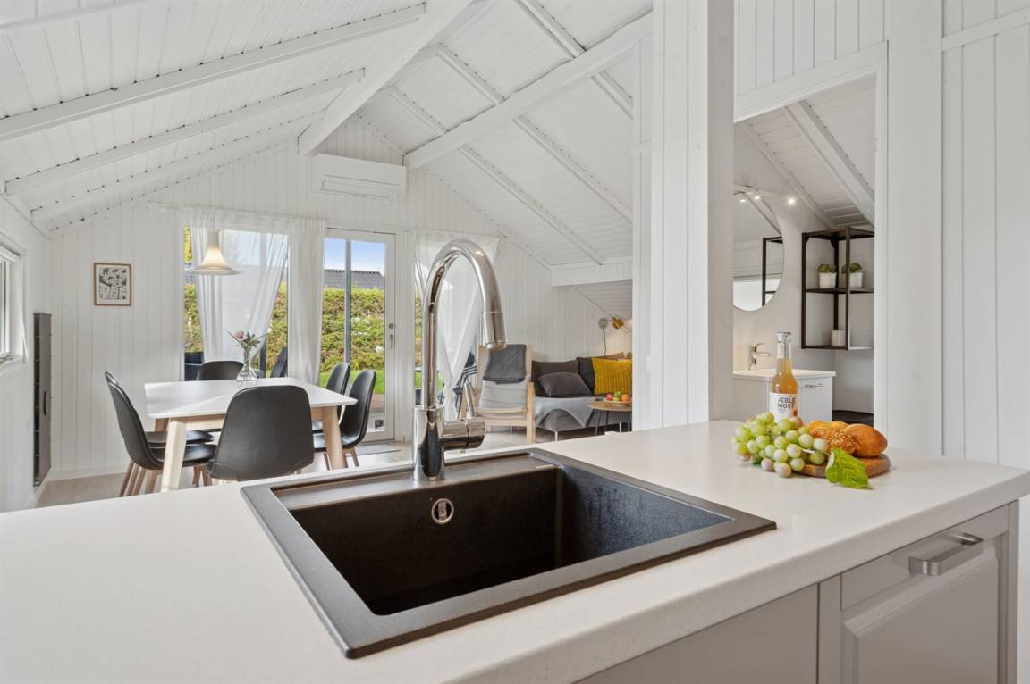 Sowohl innen als auch außen ist das Ferienhaus in gutem Zustand, und die Einrichtung ist hell. 2021 wurde es umfassend renoviert, dabei wurden unter anderem Küche und Bad erneuert. Der Grundriss ist funktional und für eine Familie mit Kindern gut geeignet. Zusätzlich gibt es ein Gästehaus, das sich z. B. für Großeltern oder ältere Kinder anbietet.