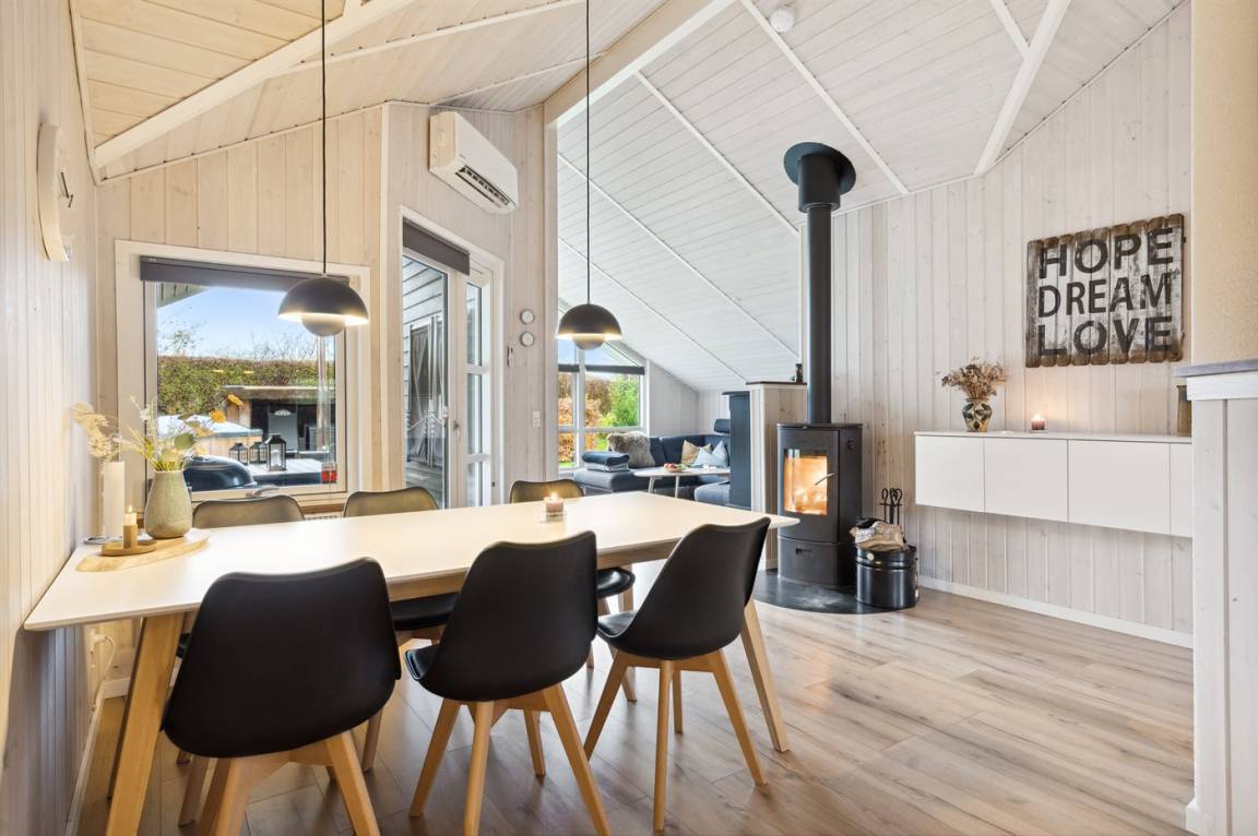 Innen präsentiert sich das Ferienhaus in sehr gutem und gepflegtem Zustand, und die Einrichtung ist hell und modern mit einer sehr guten Raumaufteilung, die gut zu einer Familie mit Kindern passt, oder du kannst die Großeltern zu einem Urlaub einladen. Alles in allem ist es ein Ferienhaus, das beste Voraussetzungen für einen schönen Urlaub bietet.