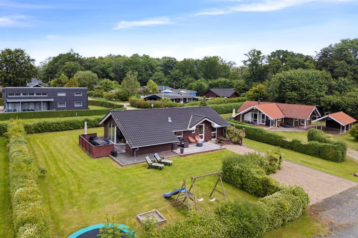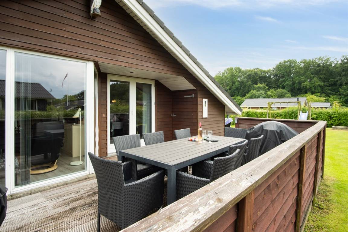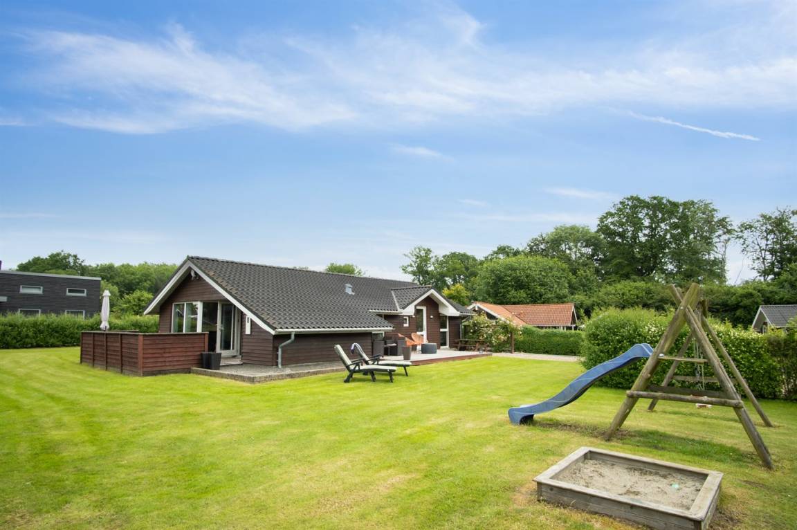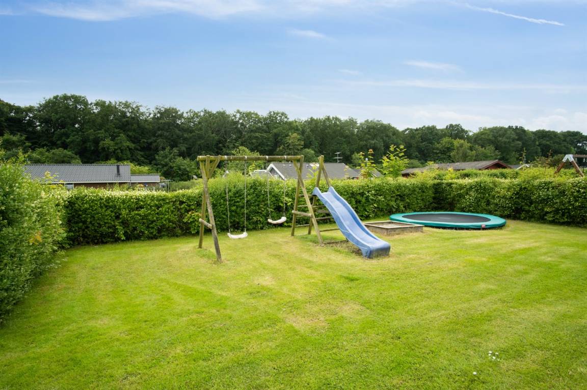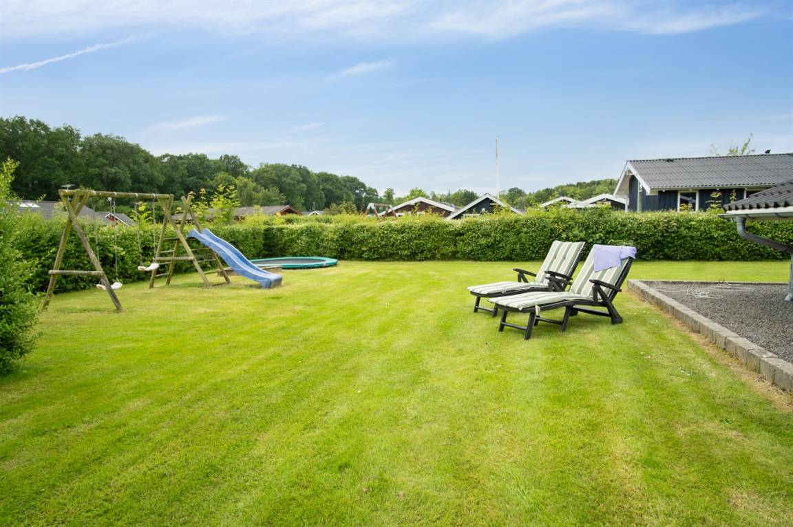 Das Ferienhaus liegt auf einem wirklich schönen Grundstück mit einem herrlichen Garten, der sich hervorragend zum Spielen und Ballspielen eignet. Darüber hinaus gibt es verschiedene Spielmöglichkeiten wie z.B. ein Trampolin und einen Sandkasten u.a. Das Ferienhaus bietet schöne Terrassenbereiche, die sich an allen Seiten des Hauses befinden, sodass es immer möglich ist, ein windgeschütztes Plätzchen zu finden, wo man die Sonne genießen und mit einem Glas Wein oder einer Tasse Kaffee die friedliche und naturschöne Umgebung genießen kann.