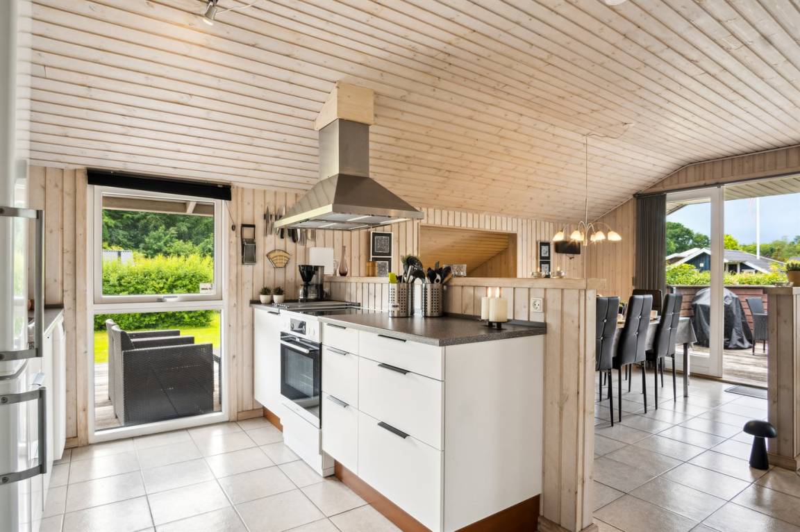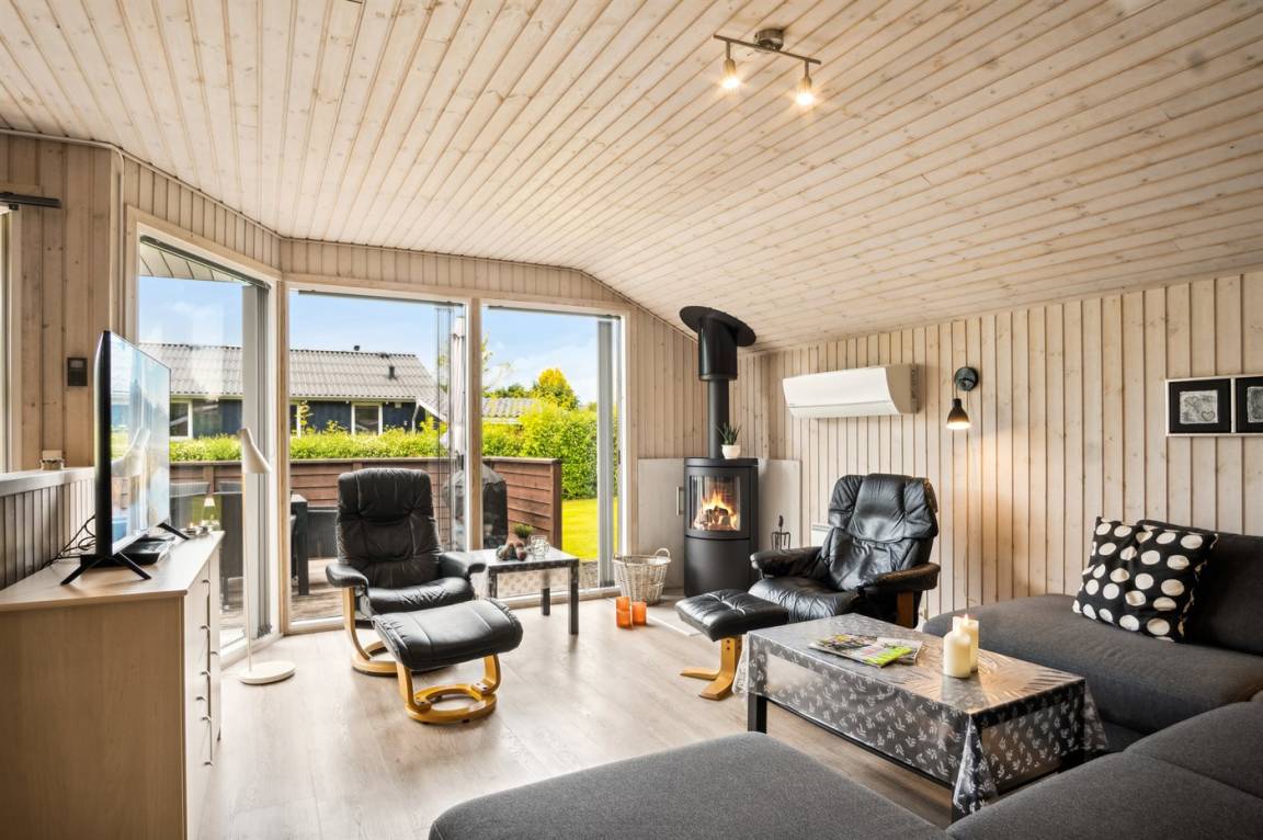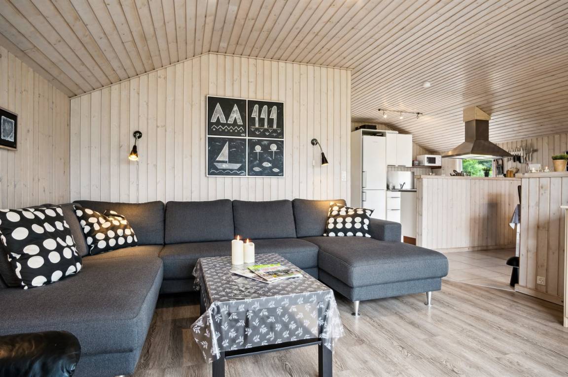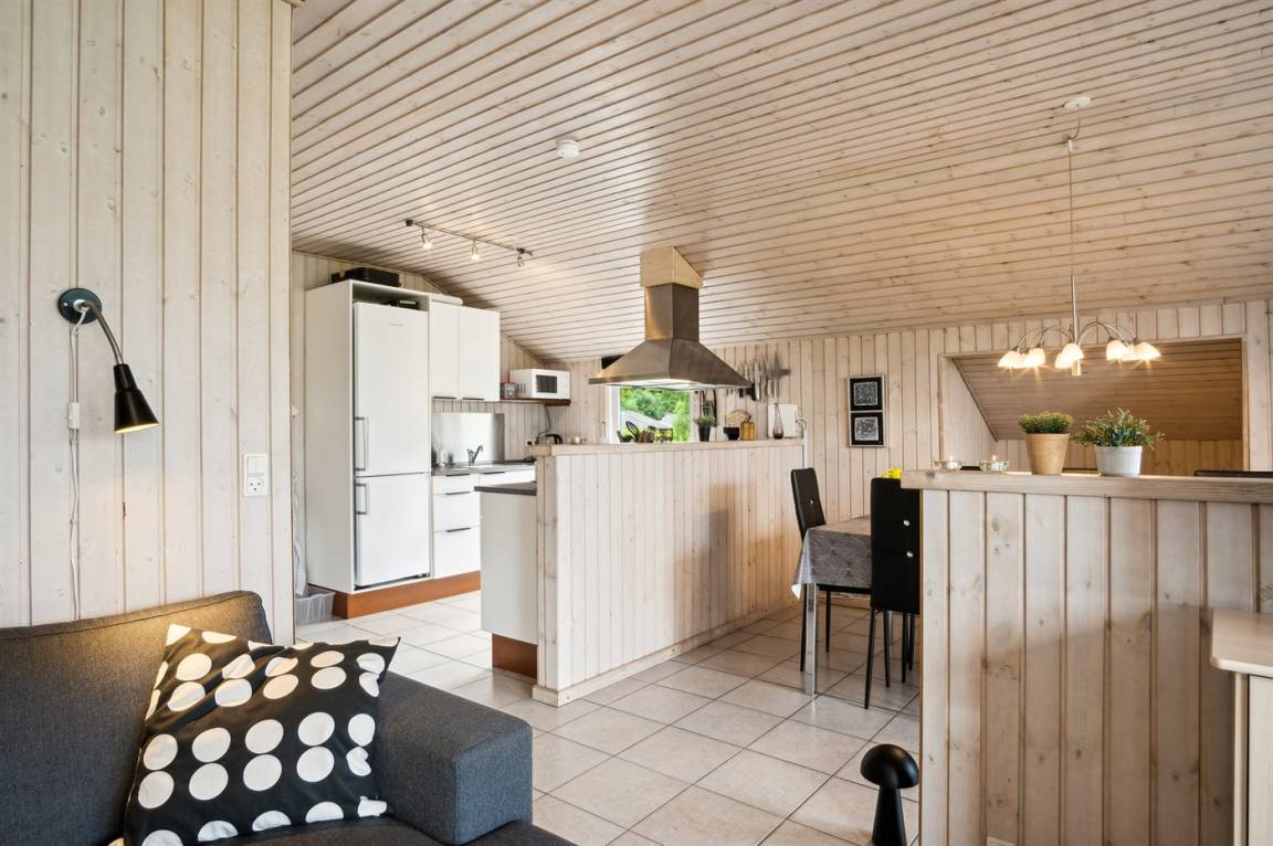 Innen präsentiert sich das Ferienhaus in einem wirklich schönen und gepflegten Zustand, und die Einrichtung ist hell und modern mit einer wirklich guten Raumaufteilung, die gut zu z.B. einer Familie mit Kindern passt, oder du kannst die Großeltern mit in den Urlaub einladen. Es ist auch möglich, sein Haustier mitzubringen. Alles in allem ist dies ein Ferienhaus, das die besten Voraussetzungen für einen schönen Urlaub bietet.