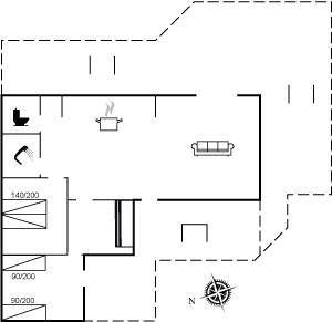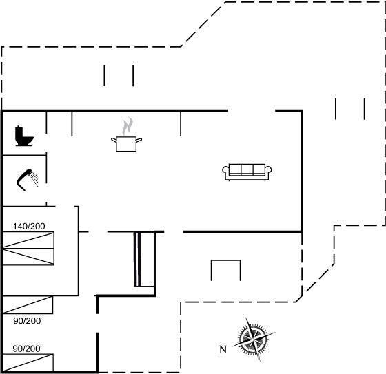 DraußenDie Ferienunterkunft liegt auf einem 600 m² großen Naturgrundstück. Die Entfernung zum Meer beträgt 400 m. Es gibt einen Badesteg in der Nähe. Die nächste Einkaufsmöglichkeit liegt 2500 m entfernt. In einem Abstand von 7000 m gibt es einen Golfplatz. Es steht ein 50 m² Terrassenareal zur Verfügung. Außerdem gibt es 15 m² überdachte Terrasse. Die Entfernung zu einem Spielplatz beträgt 50 m.Lagerfeuerstelle. Außendusche. Parkplatz auf dem Grundstück.