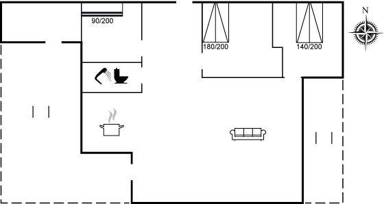 SchlafverhältnisseDie Schlafplätze verteilen sich auf 3 Schlafräume. 4 Schlafplätze in Doppelbetten. 2 Schlafplätze in einem Etagenbett.