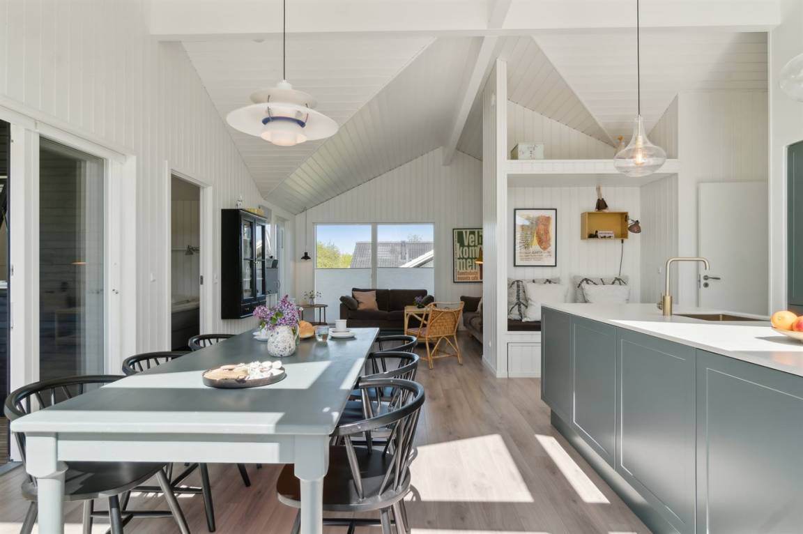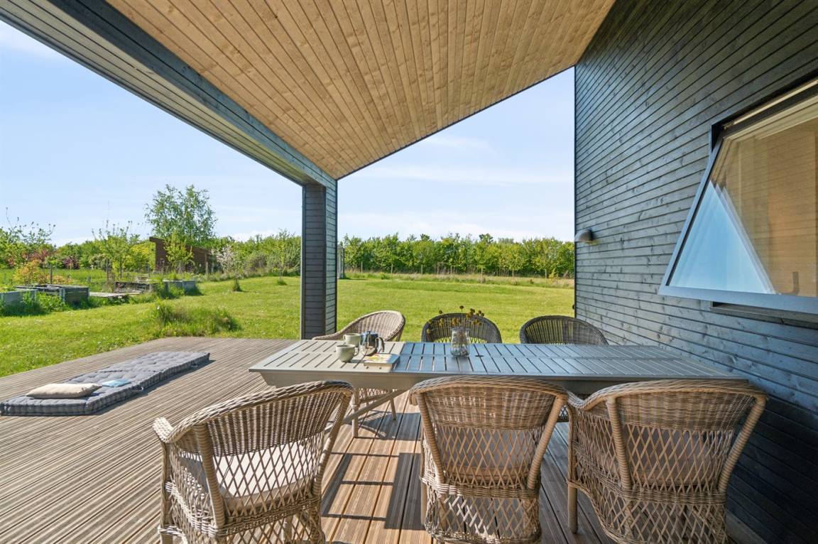 Das Haus liegt in einer neuen Wohnsiedlung, umgeben von anderen schönen neuen Ferienhäusern und direkt angrenzend an eine gemeinschaftlich nutzbare Grünfläche. Rund um das Haus verläuft eine 140 m² große Holzterrasse. Außerdem gibt es eine 19 m² große überdachte Terrasse mit Außendusche und Lademöglichkeit für E-Autos.