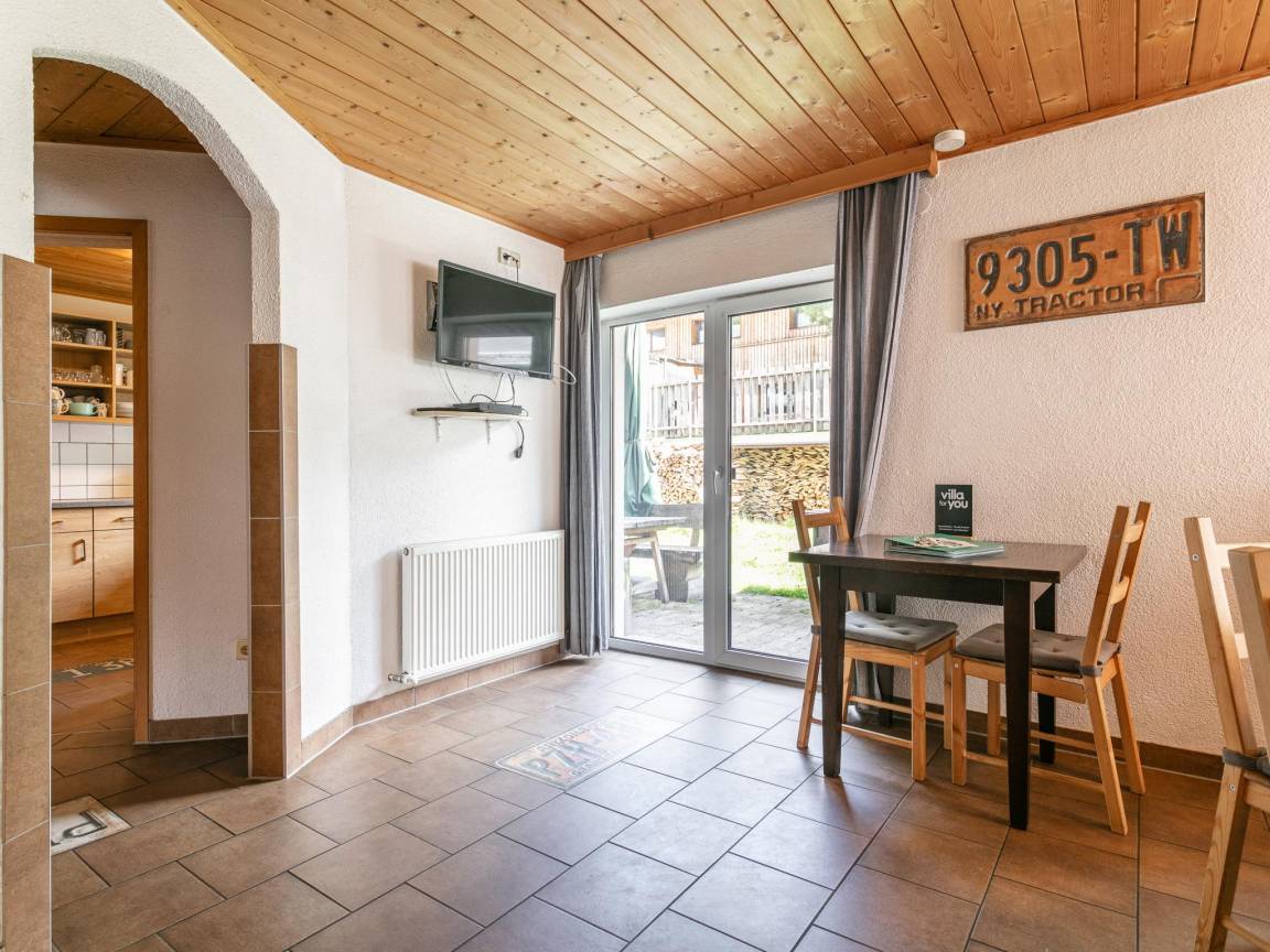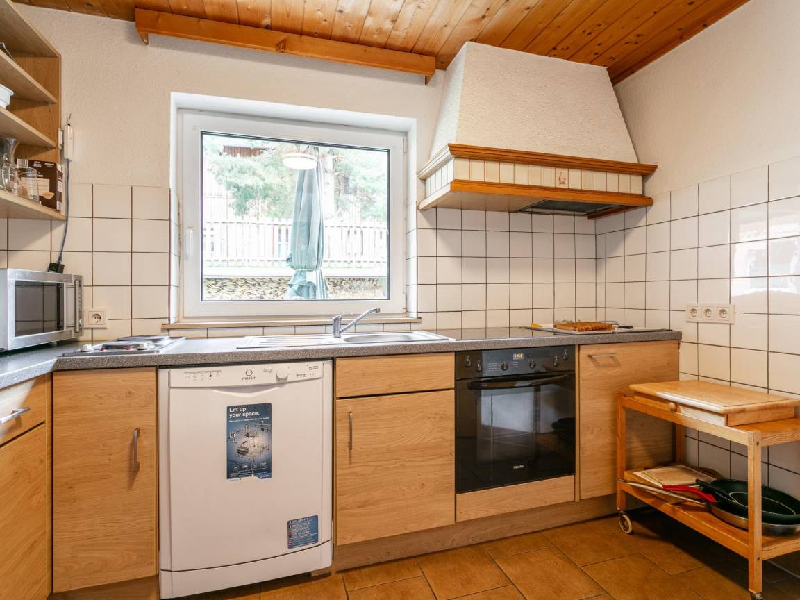 Layout : Parterre: Wohnzimmer mit TV(Flatscreen, Satellit), Esstisch, Ofen(Holz), Sitzecke , Küche mit Kochplatte(2 Kochplatten, elektrisch), Wasserkocher, Holzherd, Kochherd(4 Kochplatten, Ceranfeld), Dunstabzugshaube, Kaffeemaschine(Filter), Backofen(elektrisch), Mikrowelle, Geschirrspüler, Kühl-/Gefrierkombination , Schlafzimmer mit Doppelbett(180 x 200 cm) , Badezimmer mit 2x Dusche, 2x Waschbecken , Toilette