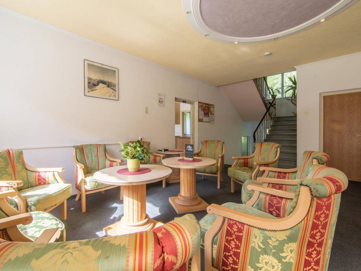 Layout : Parterre: Esszimmer mit TV(Flatscreen, Satellit), 5x Esstisch, 5x Sitzecke , Küche mit Wasserkocher, 2x Kochherd(8 Kochplatten, Ceranfeld), 2x Kaffeemaschine(Filter), 2x Backofen, Mikrowelle, Geschirrspüler, 2x Kühlschrank, Tiefkühlschrank, Küchenmaschine , Gemeinschaftsraum, 2x Toilette, Urinal