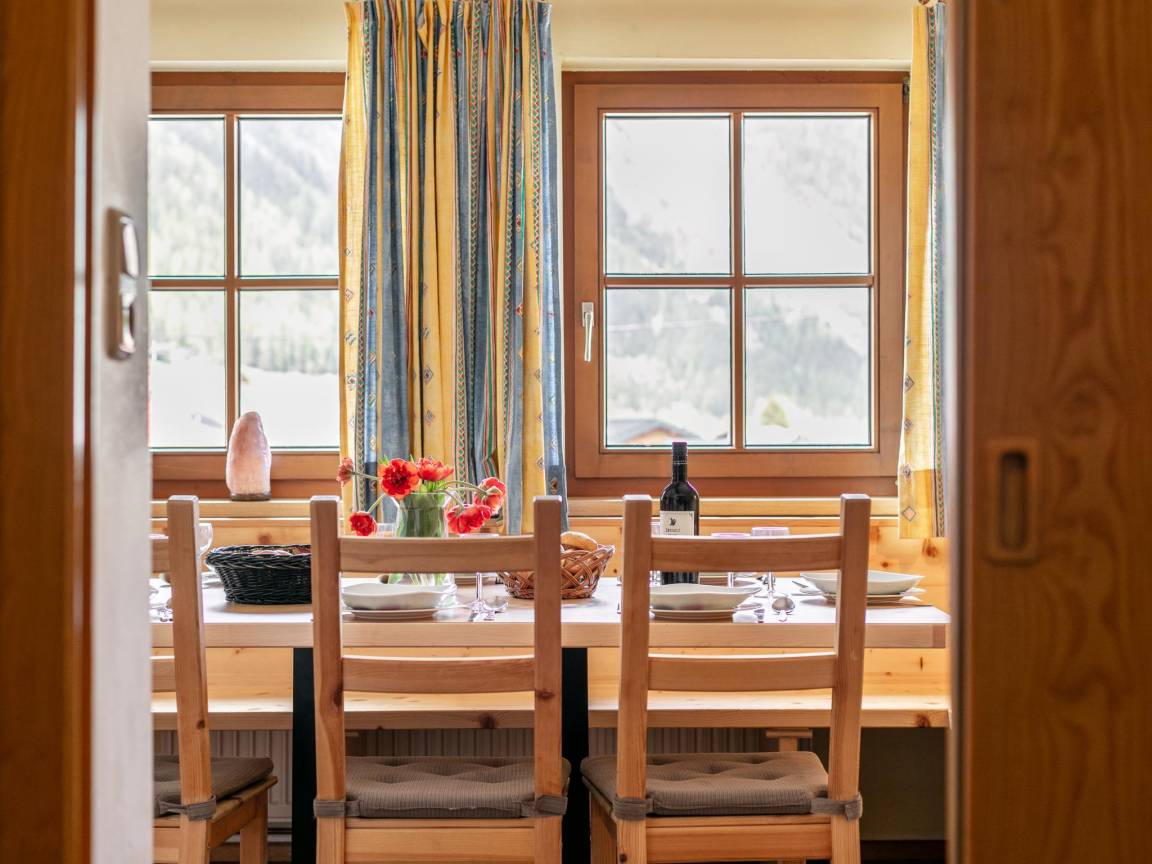 Hausbeschreibung : Der Schweizerhof in Längenfeld/Huben verfügt über insgesamt 8 Ferienwohnungen von 2-8 Personen und liegt unweit der Ötztalstraße zum ca. 8 km entfernten Sölden. Die Wohnungen sind stilvoll und gemütlich mit viel Holz ansprechend eingerichtet und das Haus verfügt über einen schönen Saunabereich, Infrarotsauna, Massagedusche und einen gemütlichen Ruheraum. Der Skibus hält nur 50 m entfernt und bringt Sie direkt nach Sölden und Obergurgl in die Top Skigebiete
