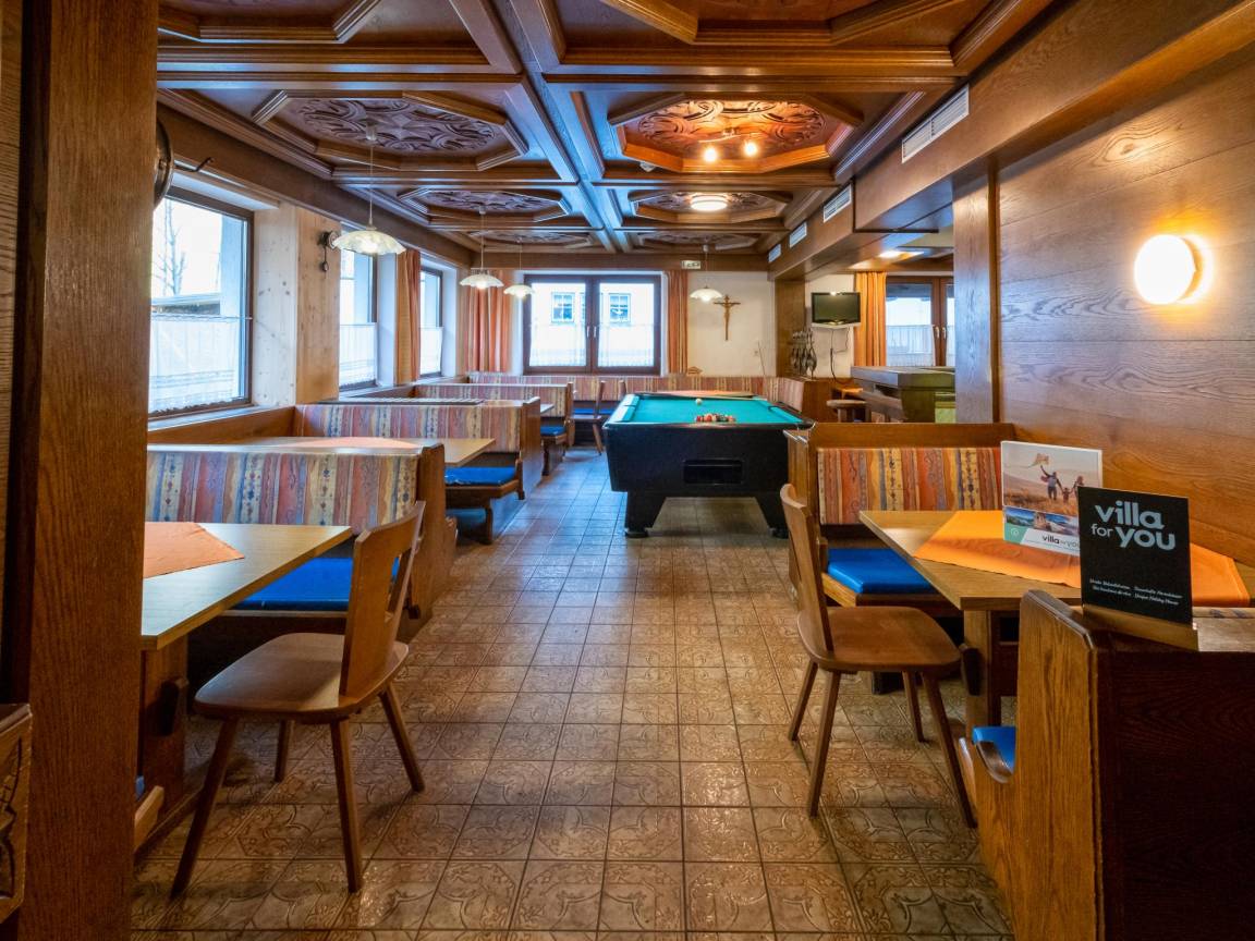 Wintergarten/Veranda, Skiabstellraum mit Skischuhheizung , Tresor, Balkon oder Terrasse, Heizung(Zentral), BBQ(Holzkohle), 16x Parkplatz, Billard, 1x Kinderbett (ohne Bettwäsche), 2x Hochstuhl, Föhn