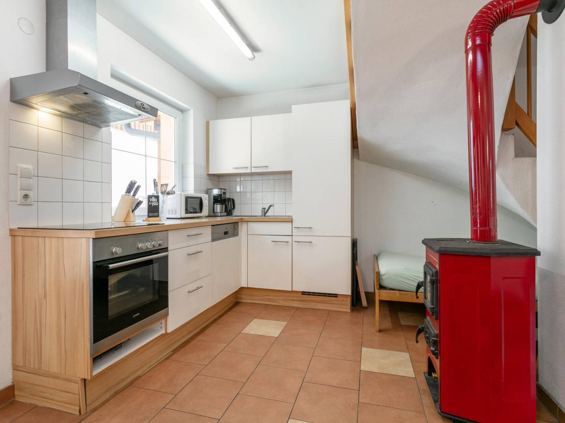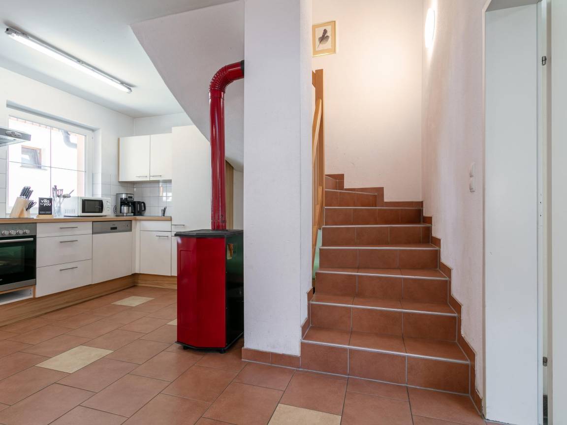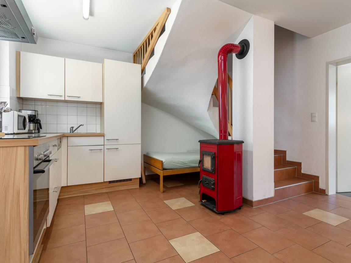 Layout : Parterre: offene Küche mit Esstisch, Ofen(Holz), Wasserkocher, Kochherd(4 Kochplatten, Ceranfeld), Dunstabzugshaube, Kaffeemaschine(Filter), Backofen(elektrisch), Mikrowelle, Geschirrspüler, Kühl-/Gefrierkombination , Wohn/Esszimmer mit Doppelschlafcouch, TV(Flatscreen, Satellit) , Schlafzimmer mit Badezimmer mit Doppelbett(180 x 200 cm), TV(Flatscreen, Satellit), Waschbecken, Dusche, Toilette