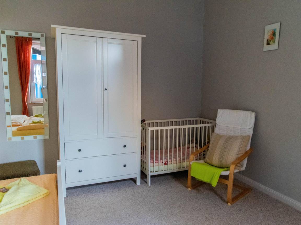 Layout : Parterre: Eingang, Esszimmer mit Esstisch, Radio, 1x Hochstuhl , Küche mit Wasserkocher, Toaster, Kochherd(4 Kochplatten, elektrisch), Dunstabzugshaube, Kaffeemaschine(Filter), Backofen, Mikrowelle, Geschirrspüler, Kühlschrank(+ Gefrierfach) , Schlafzimmer mit Doppelbett(180 x 200 cm), 1x Kinderbett (inklusive Bettwäsche) , Schlafzimmer mit 2x Einzelbett(90 x 200 cm) , Schlafzimmer mit Einzelklappbett (80 x 200 cm), Französisches Bett(140 x 200 cm) , Badezimmer mit Waschbecken, Dusche, Toilette, Föhn , Flur