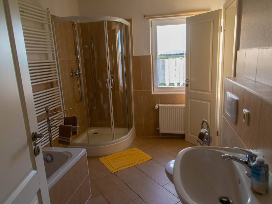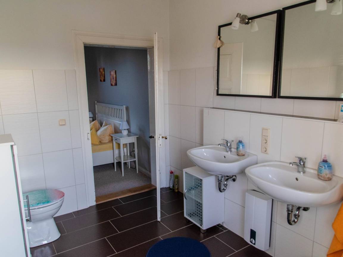 In der 1. Etage: Wohnzimmer mit Doppelschlafcouch, TV(Flatscreen, Satellit), Sitzecke , Küche mit Wasserkocher, Toaster, Kochherd(4 Kochplatten, elektrisch), Dunstabzugshaube, Kaffeemaschine(Filter), Backofen, Kühl-/Gefrierkombination, Waschmaschine , Schlafzimmer mit Einzelbett(90 x 200 cm), Doppelbett(180 x 200 cm) , Schlafzimmer mit Einzelbett(90 x 200 cm), Doppelbett(180 x 200 cm) , Badezimmer mit Waschbecken, Dusche, Toilette, Föhn , Flur